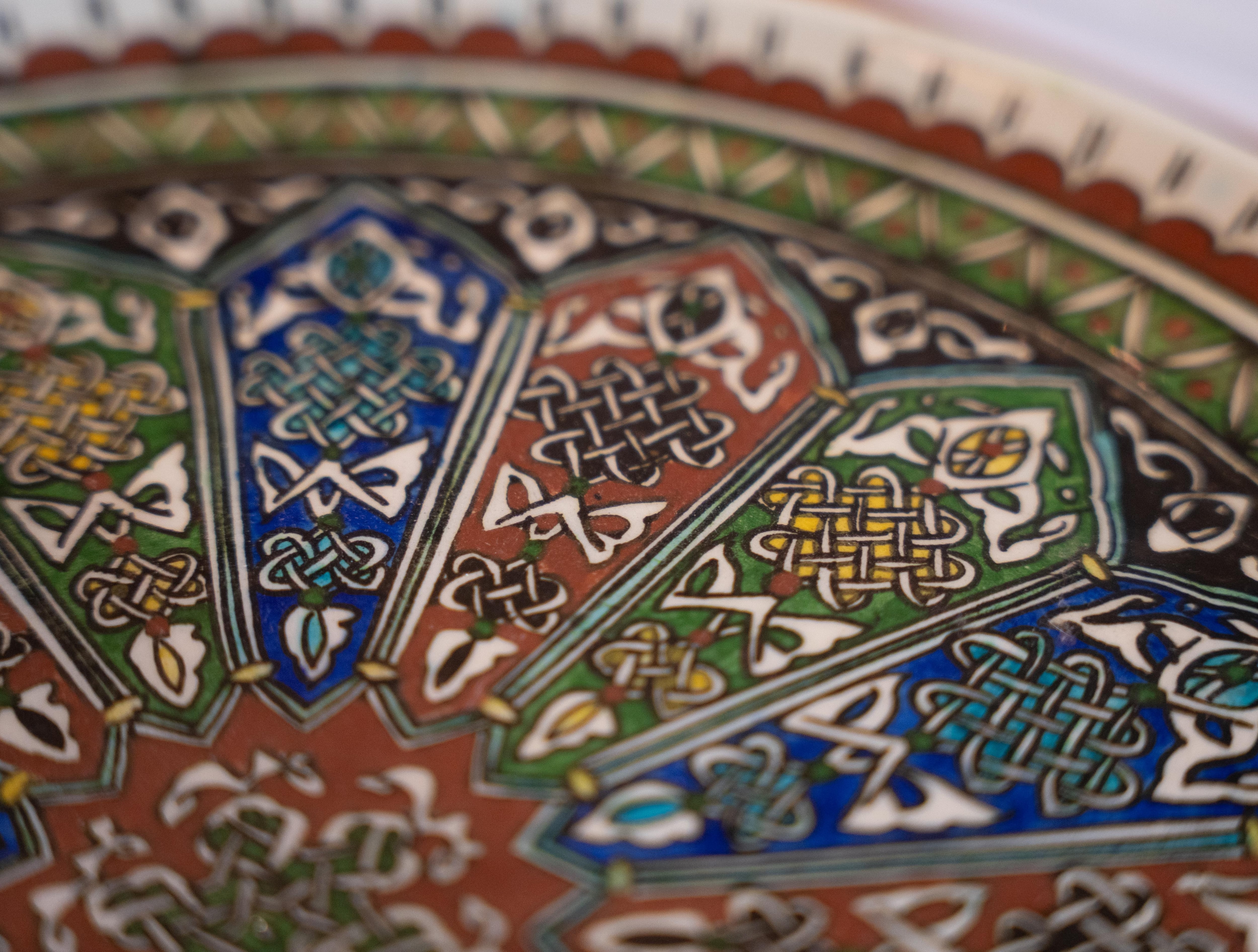 トルコの西部、キャタフヤ地方の伝統的手描きの絵皿、キャタフヤ陶器の装飾用大皿です。