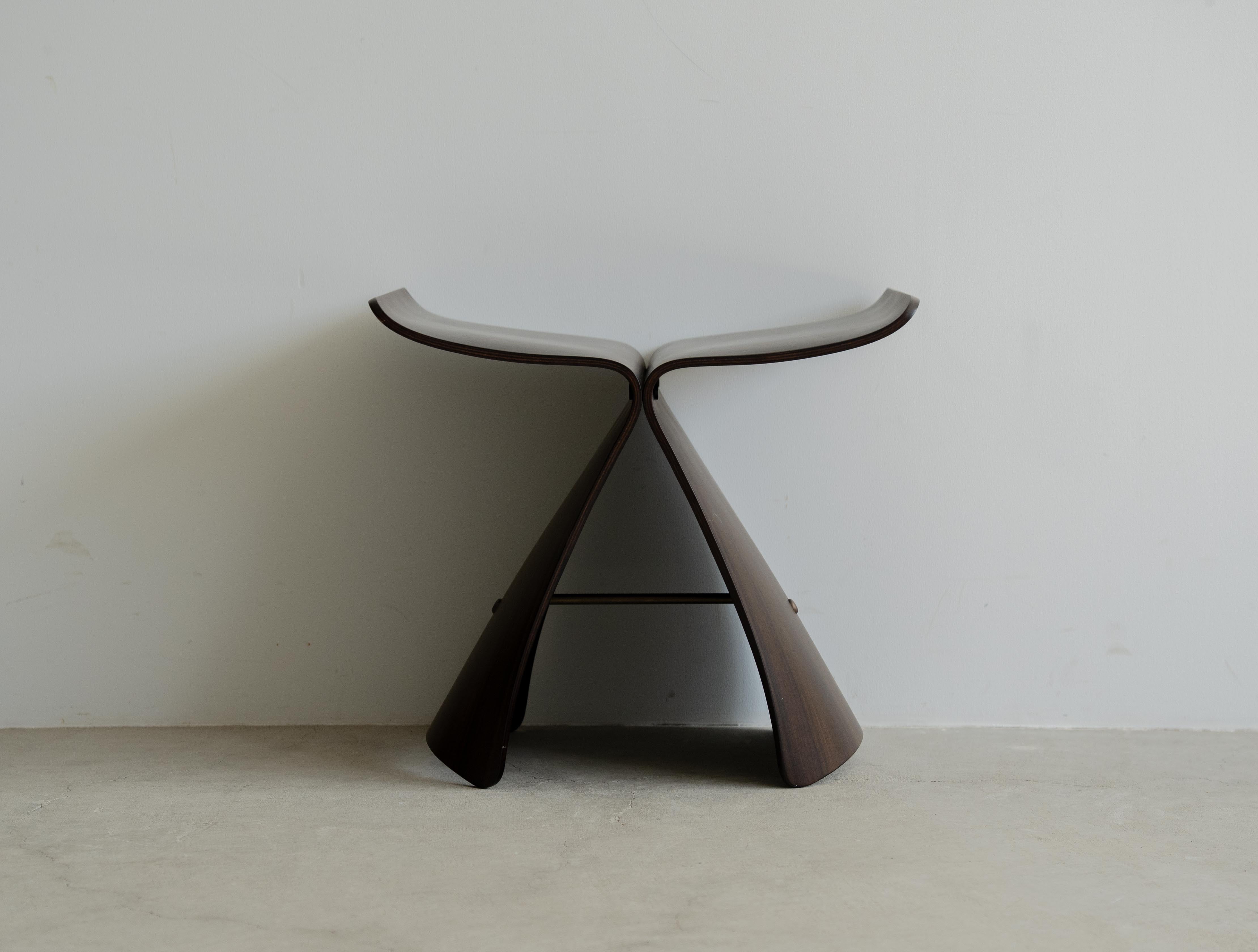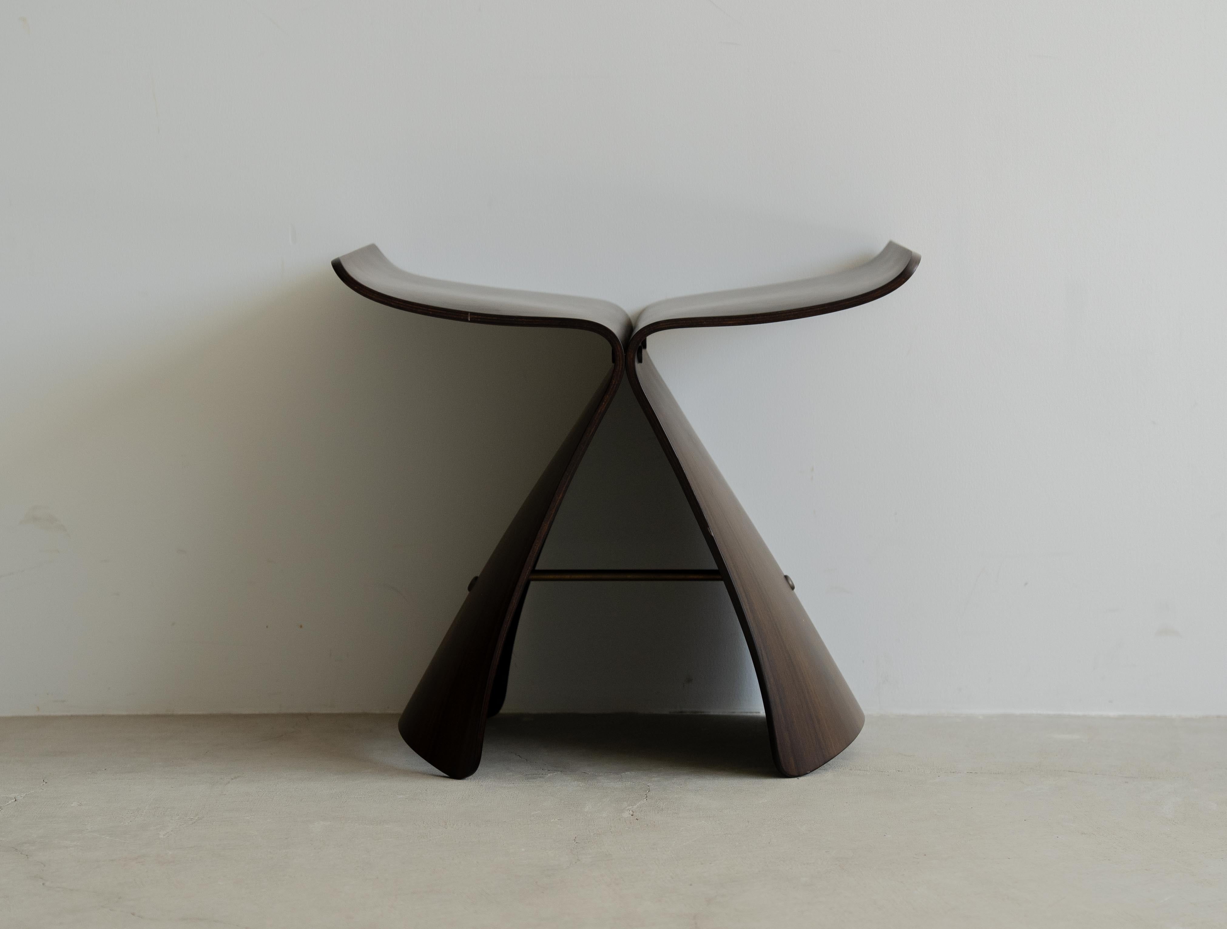 1954年、日本を代表するプロダクトデザイナー 柳宗理によってデザインされた名作「バタフライスツール」、天童木工製現行中古品。