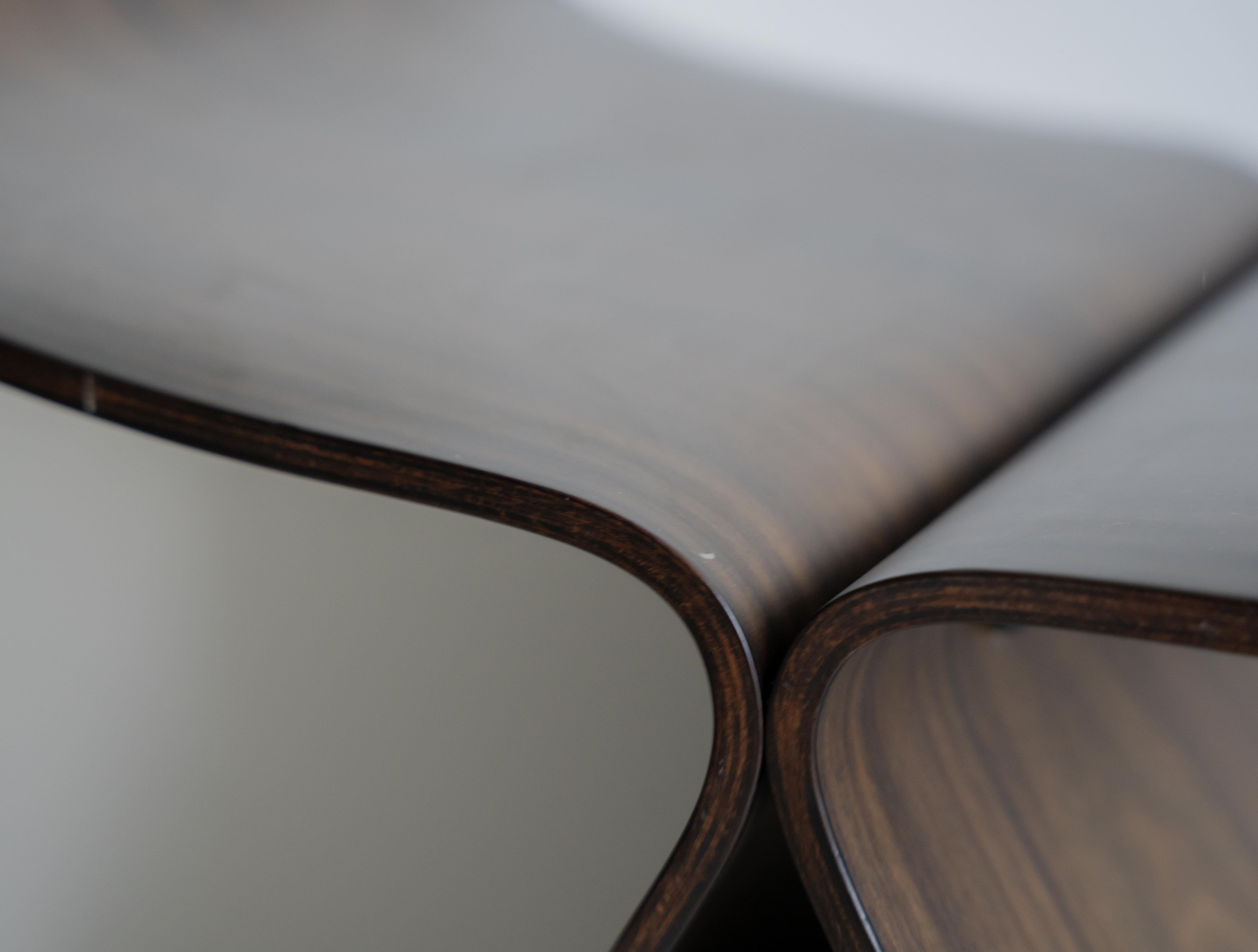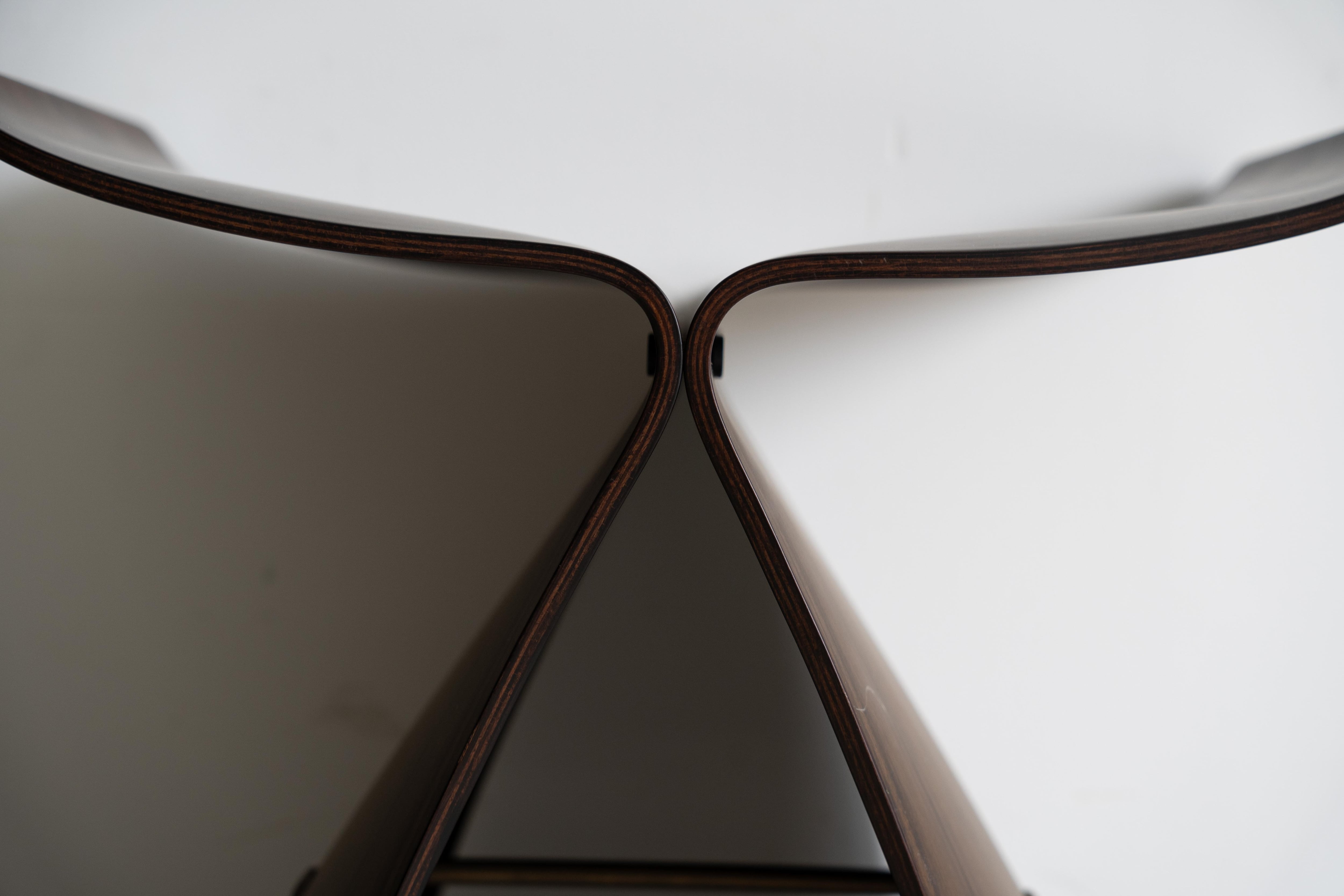 2枚のプライウッドが組み合わさった姿は、蝶が羽を広げたことを思わせる美しい曲線を描きます。