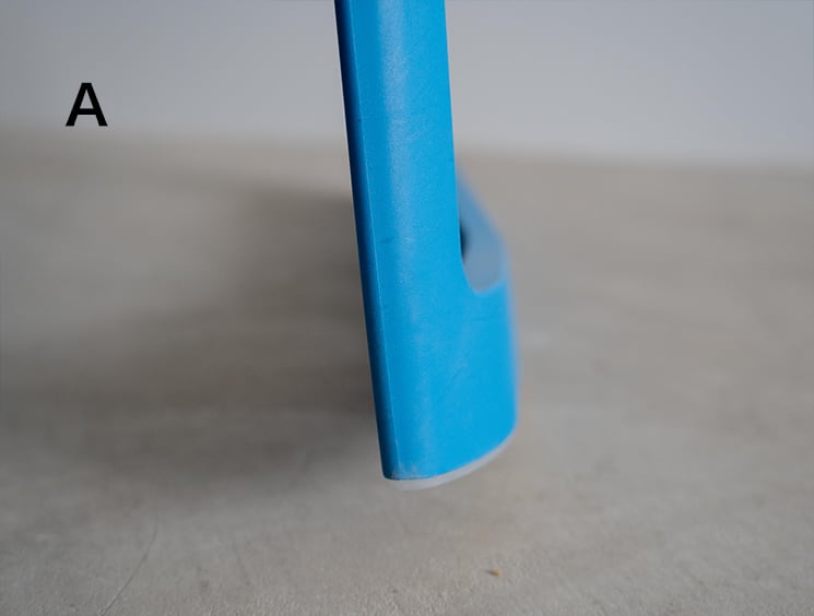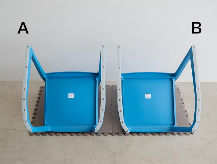 人間工学を取り入れ、学習する姿勢と、学習する椅子にギャップがあることに注目し、約3年の月日をかけて開発されたのが、脚の先端に9度の斜傾を設けたこのチェアでした。