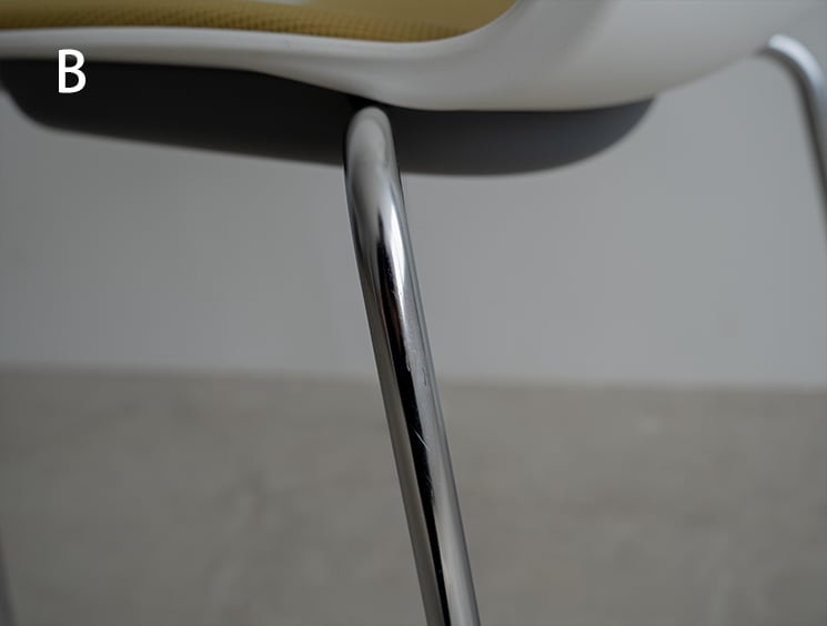 経年によるスレや軽微なキズ、落としきれなかった汚れ等、使用感はあるものの、使用に影響のあるダメージはなく、分解して座面ファブリックはじめ、各パーツクリーニング済み。脚部分も研磨済みにて、お届け後にすぐにお使いできる状態となっております。