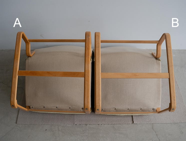 木部はワックスポリッシュ、張地部分はエアーブロー済み、接地面用のフェルトを無料でご指定いただけますので、到着その日から気兼ねなくご使用いただけます。