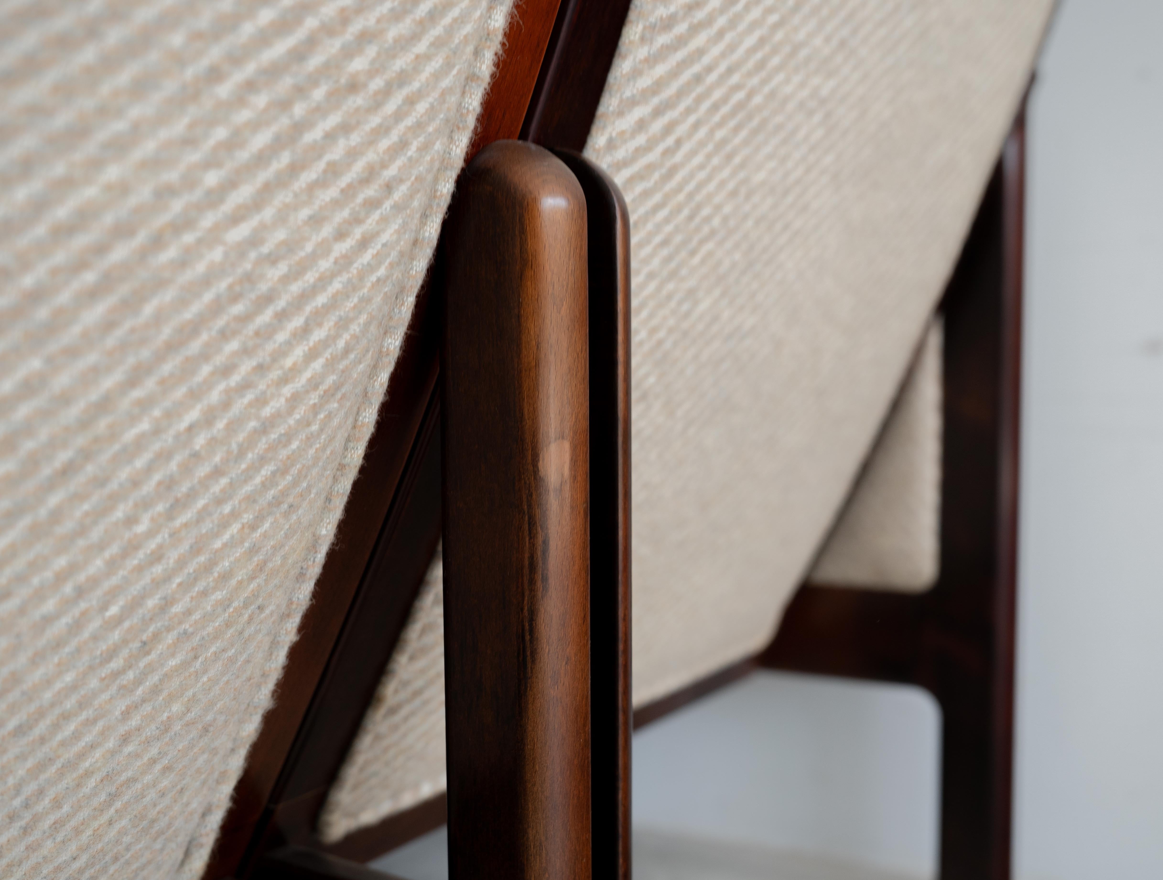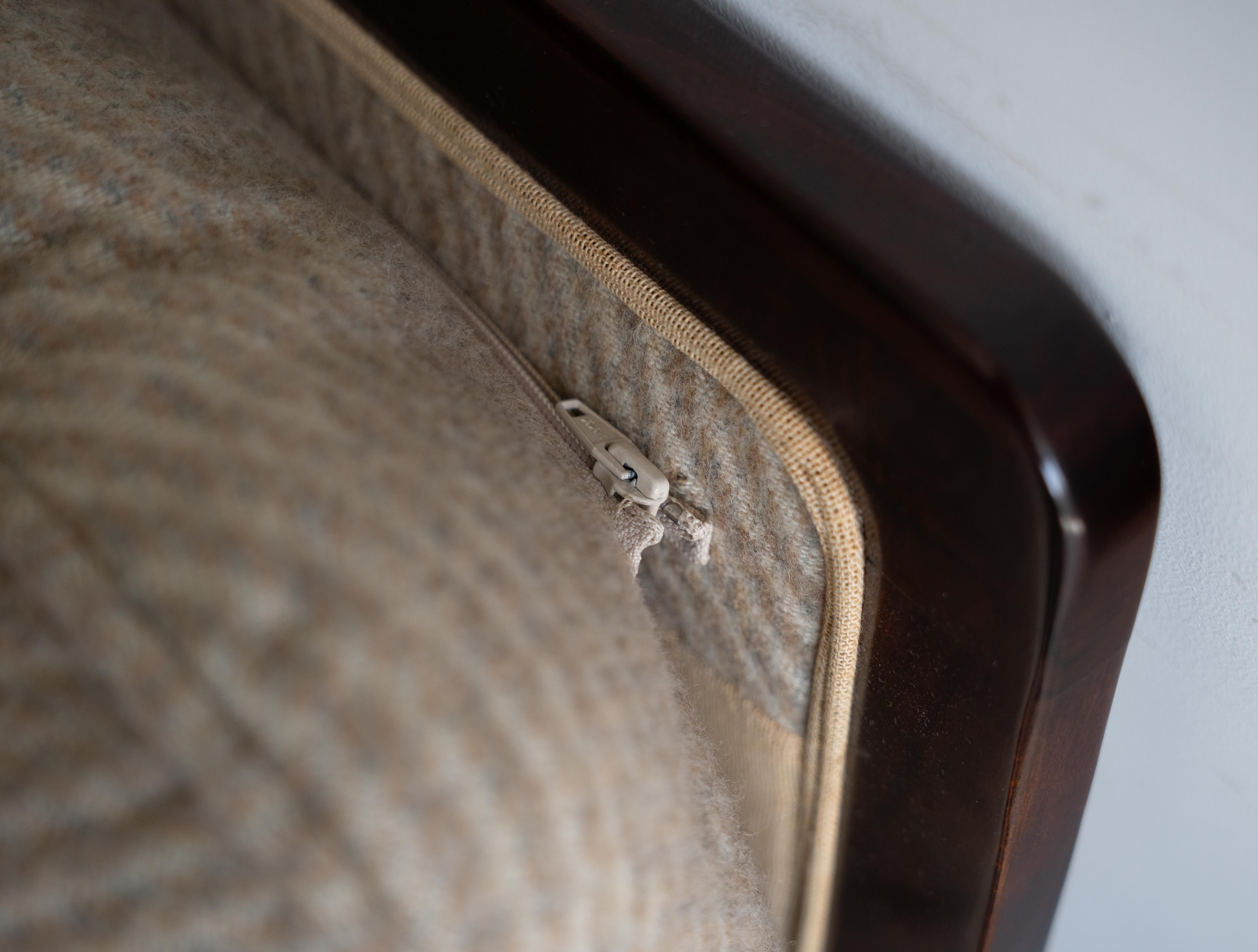 60年代の北欧家具を意識した流麗なフォルムに、高級ウールを贅沢に使用した平織地のファブリックが調和、書斎やリビングの片隅にシックな気品と心安らぐゆとりをもたらします。