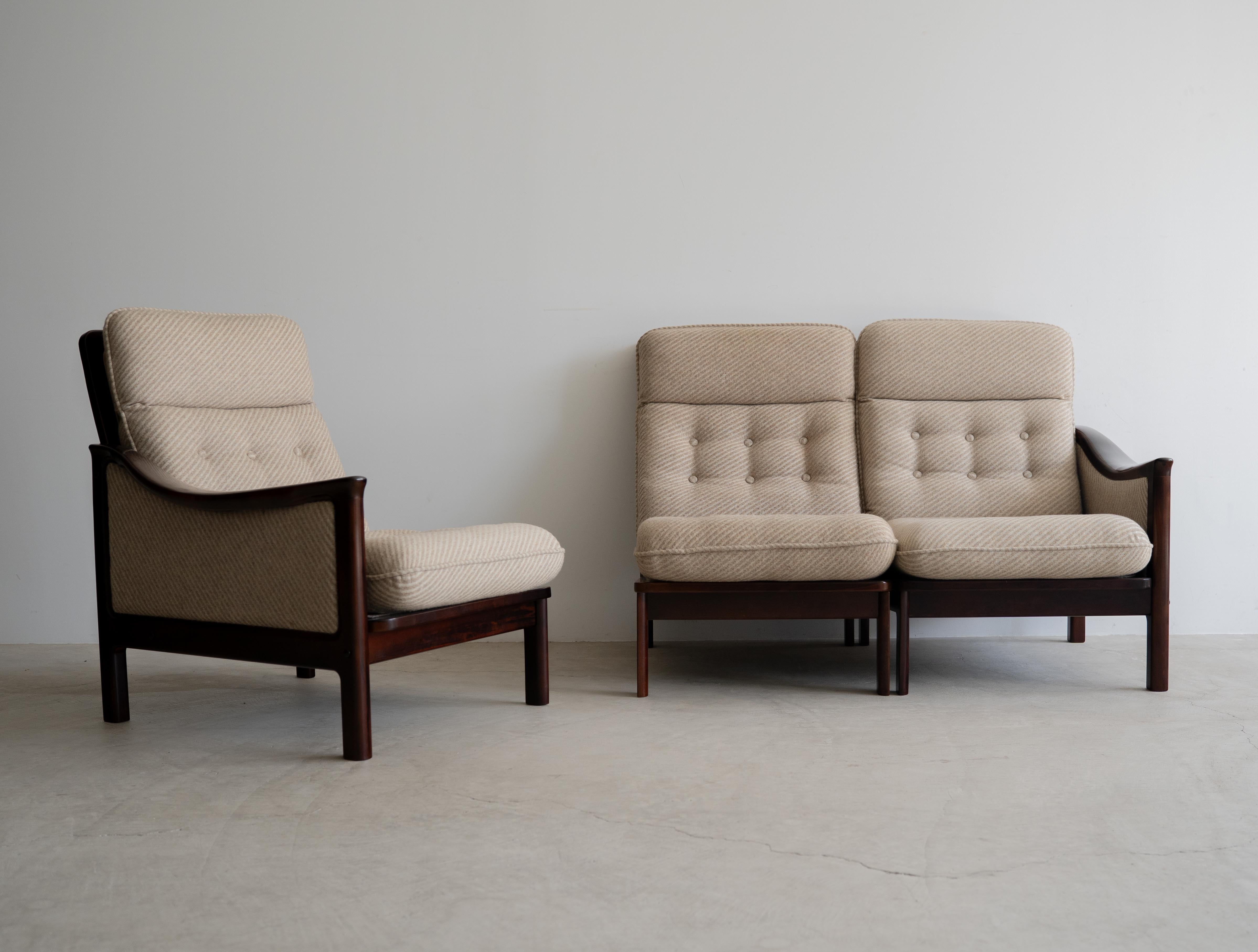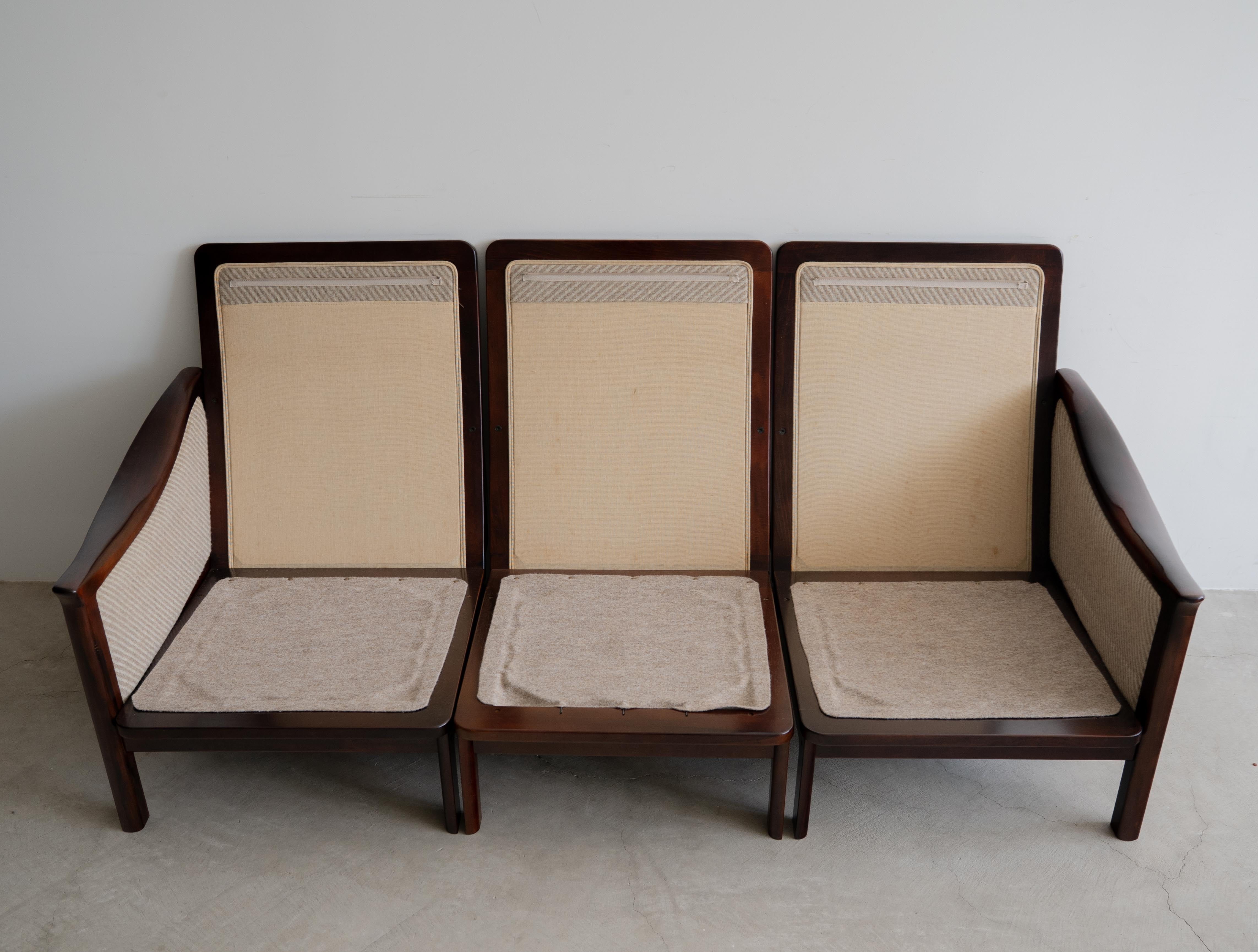 80年代、オールドカリモクの高級応接セットのセパレートスリーシーター。