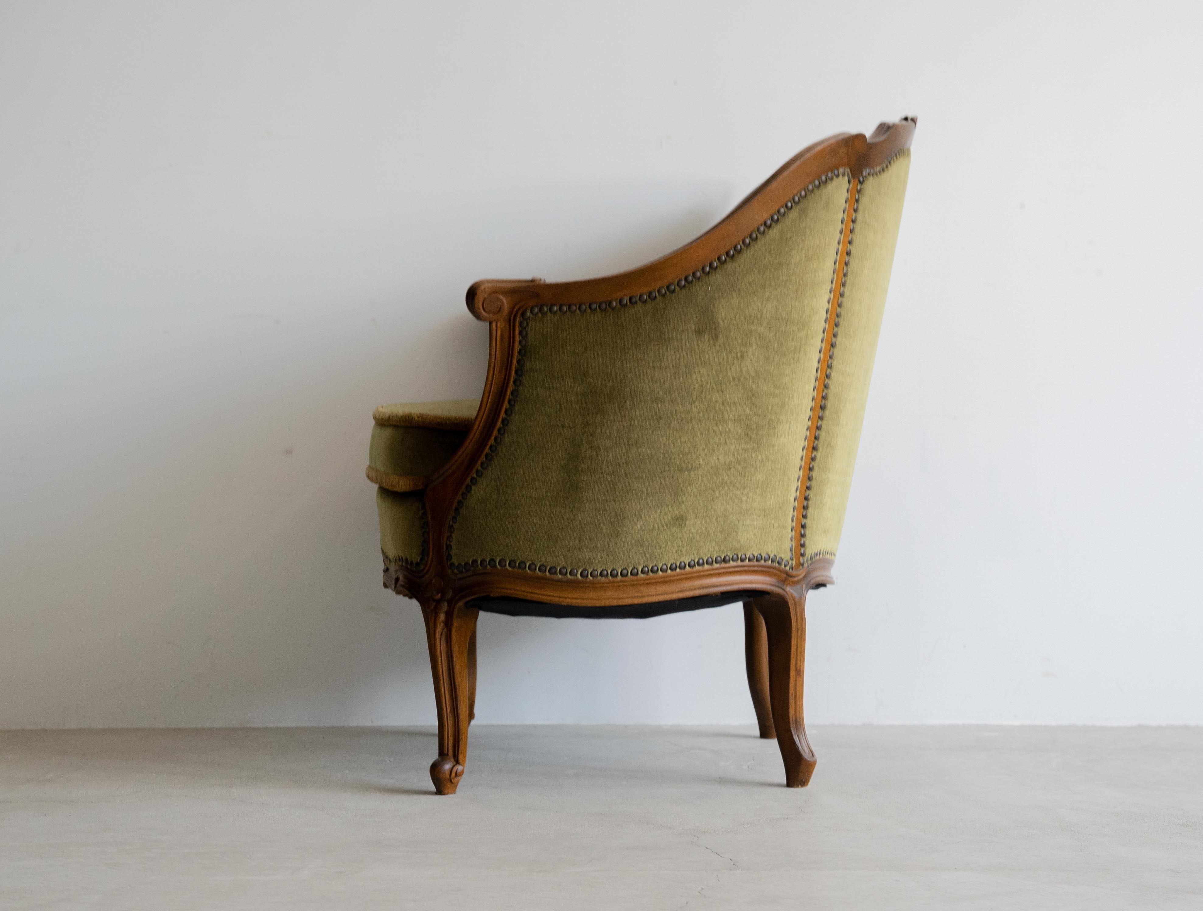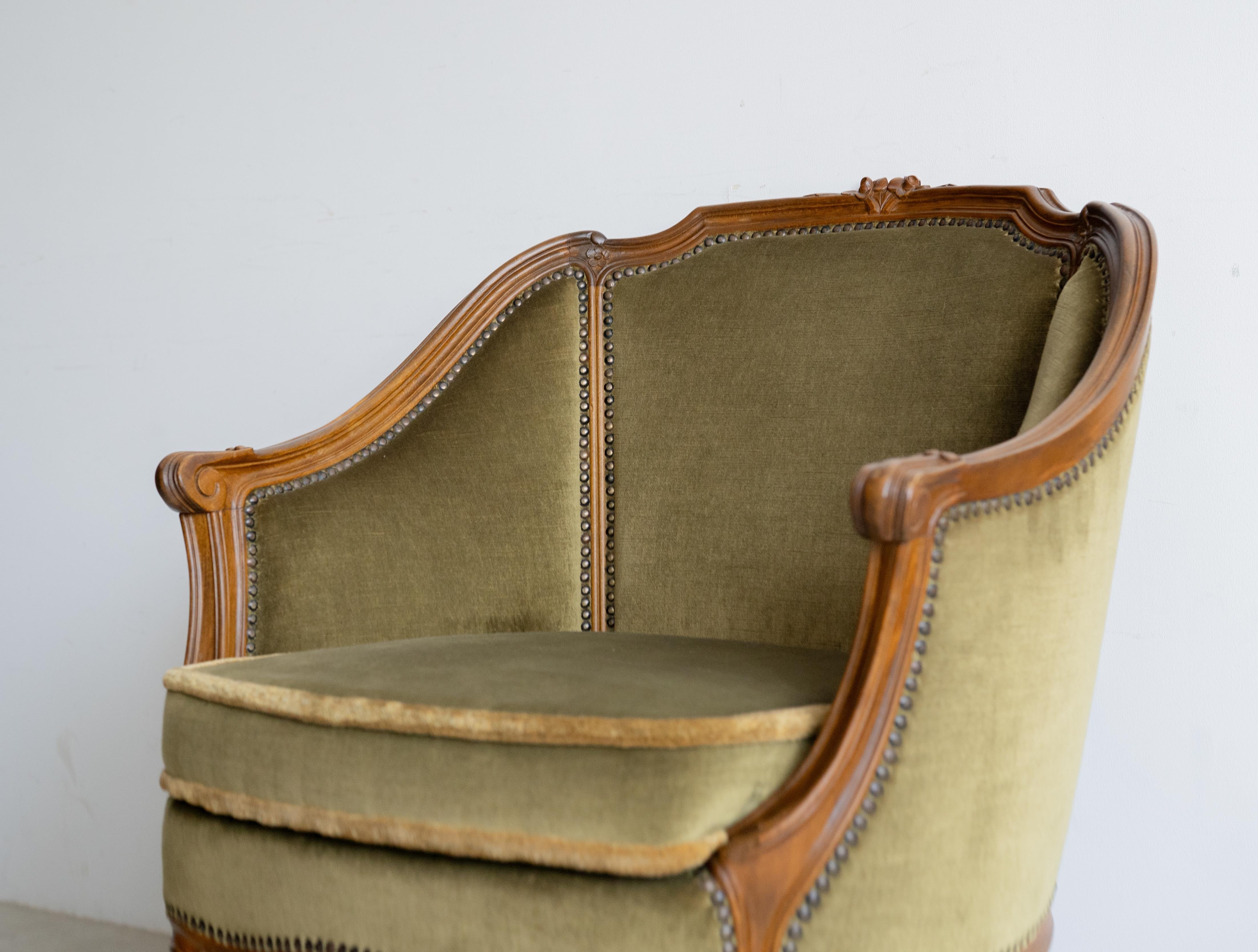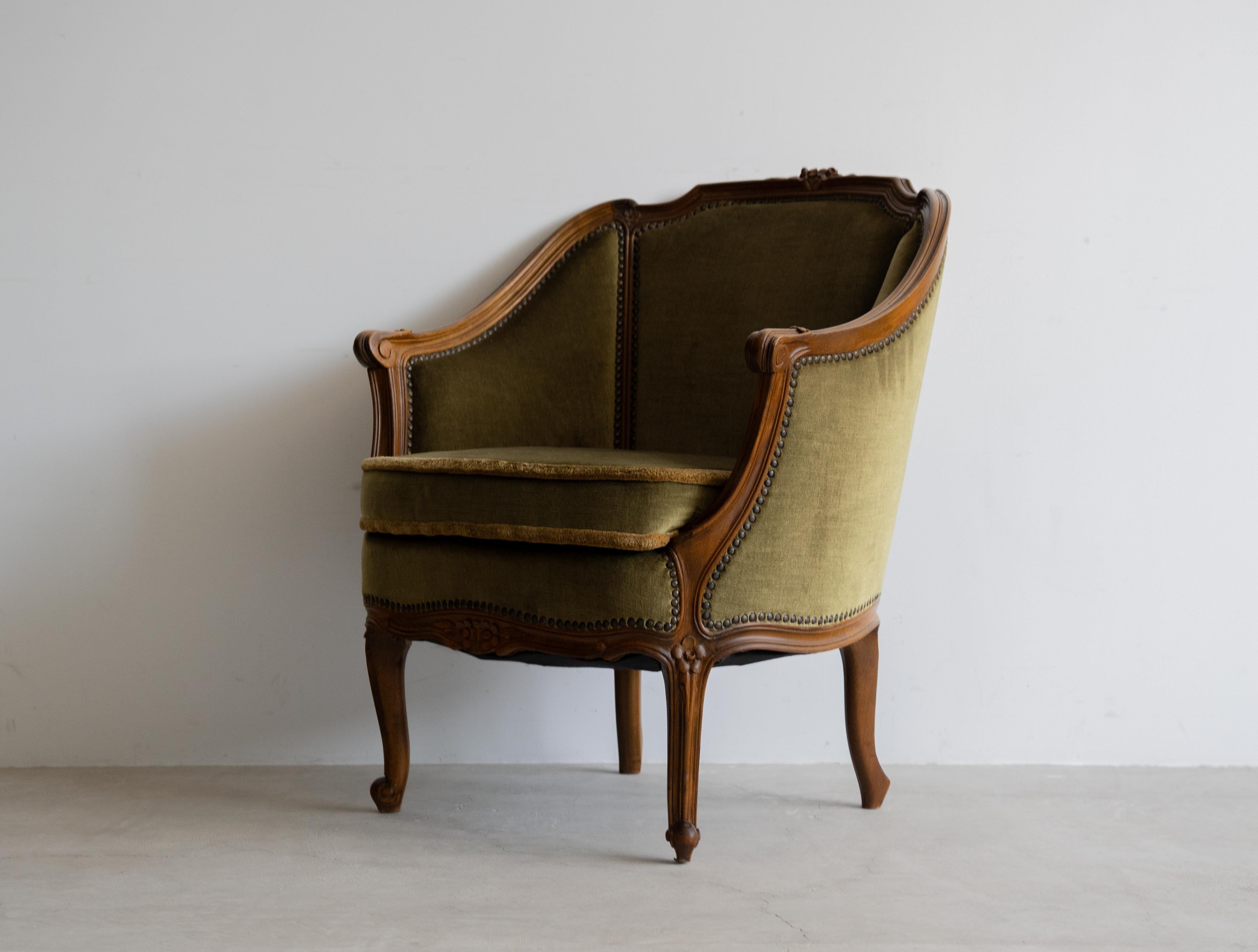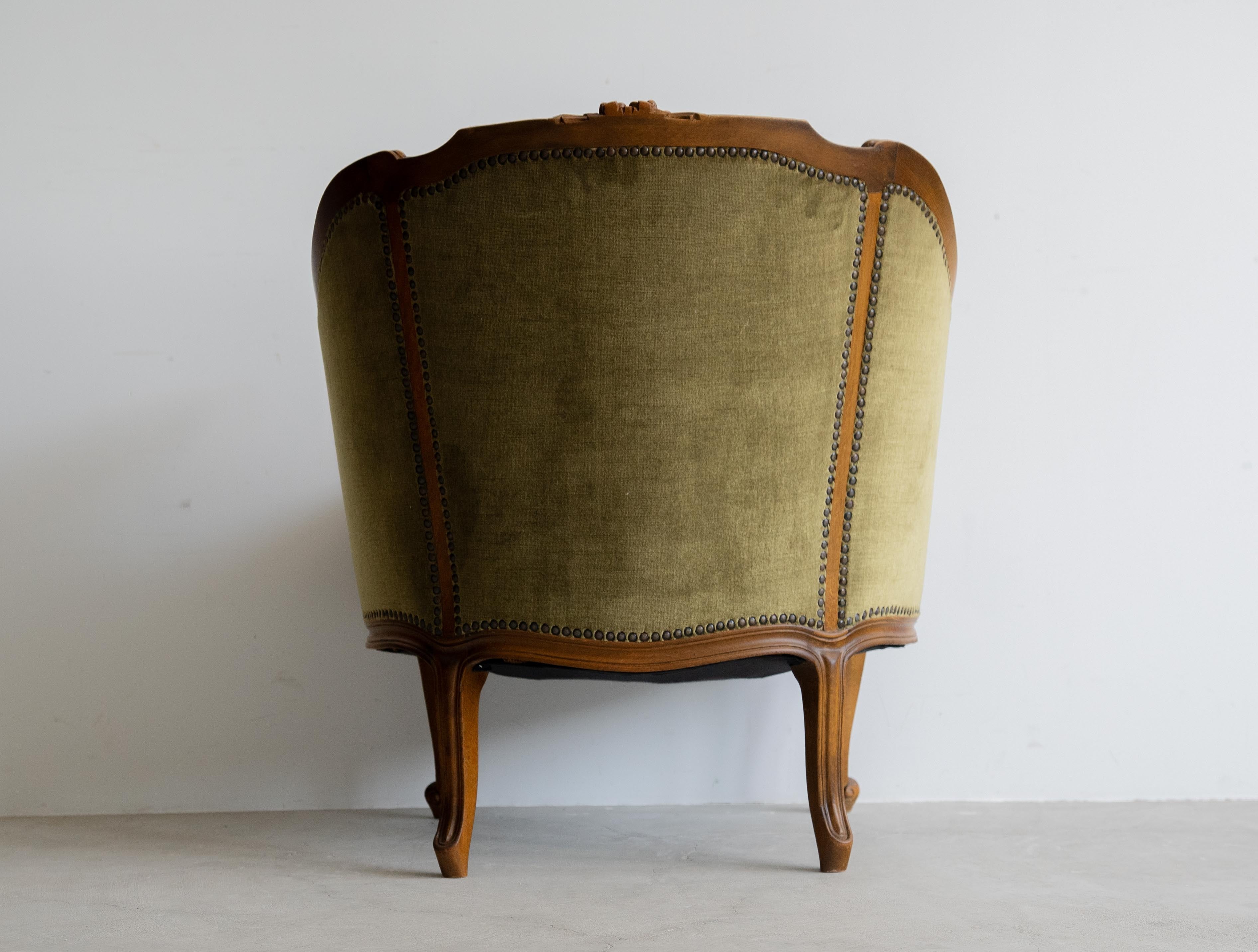 UKヴィンテージ グリーンモケットのサロンチェア ワンシーター