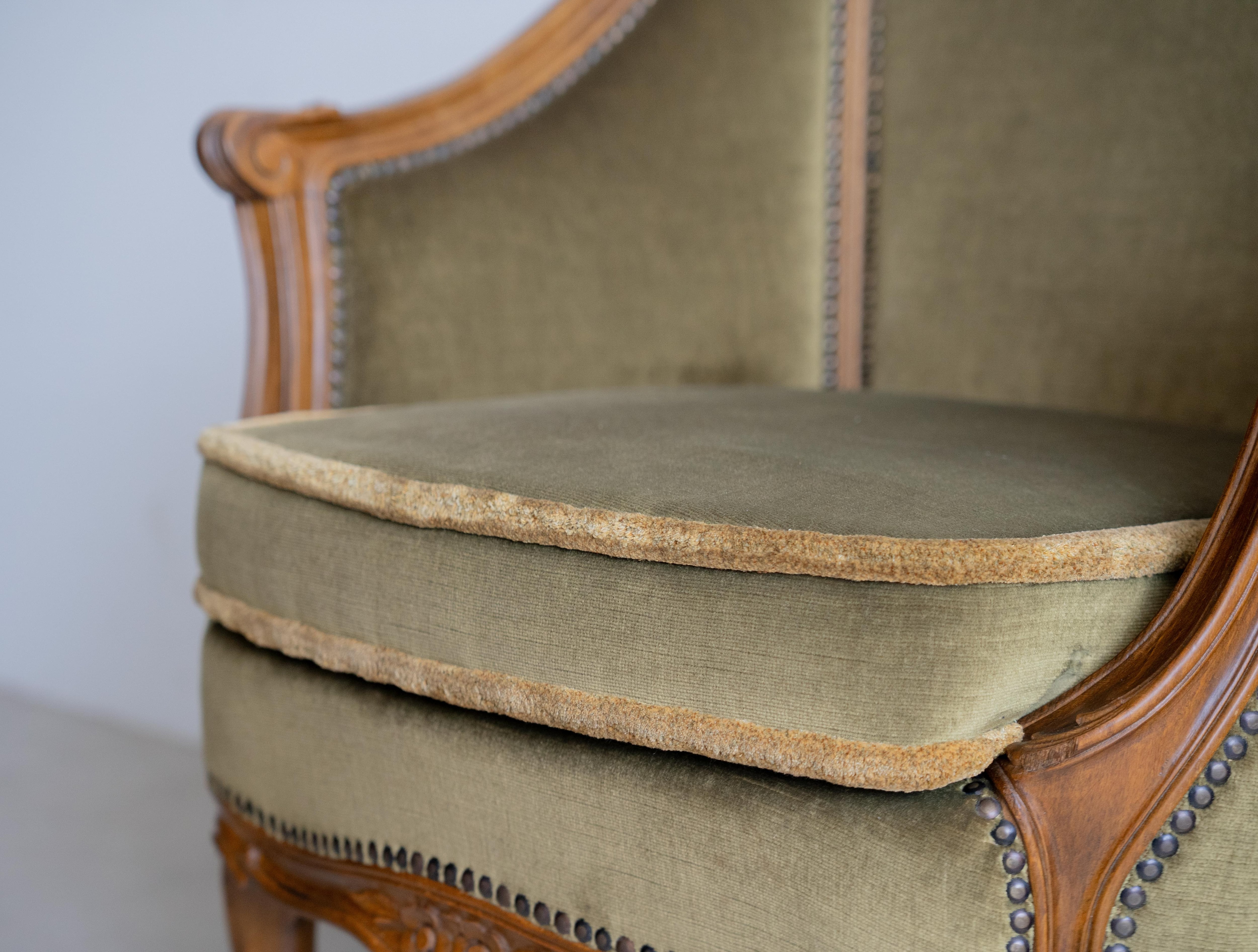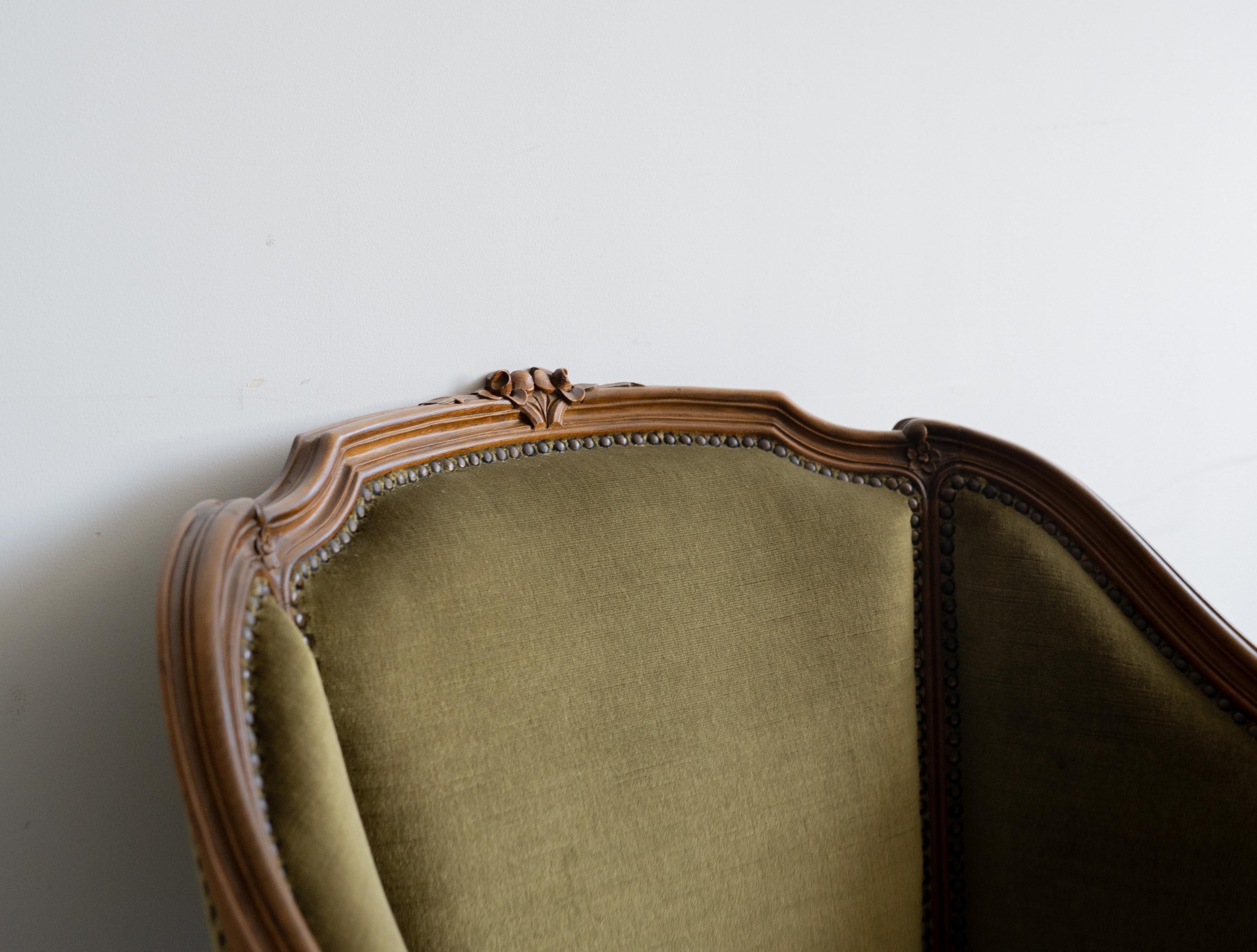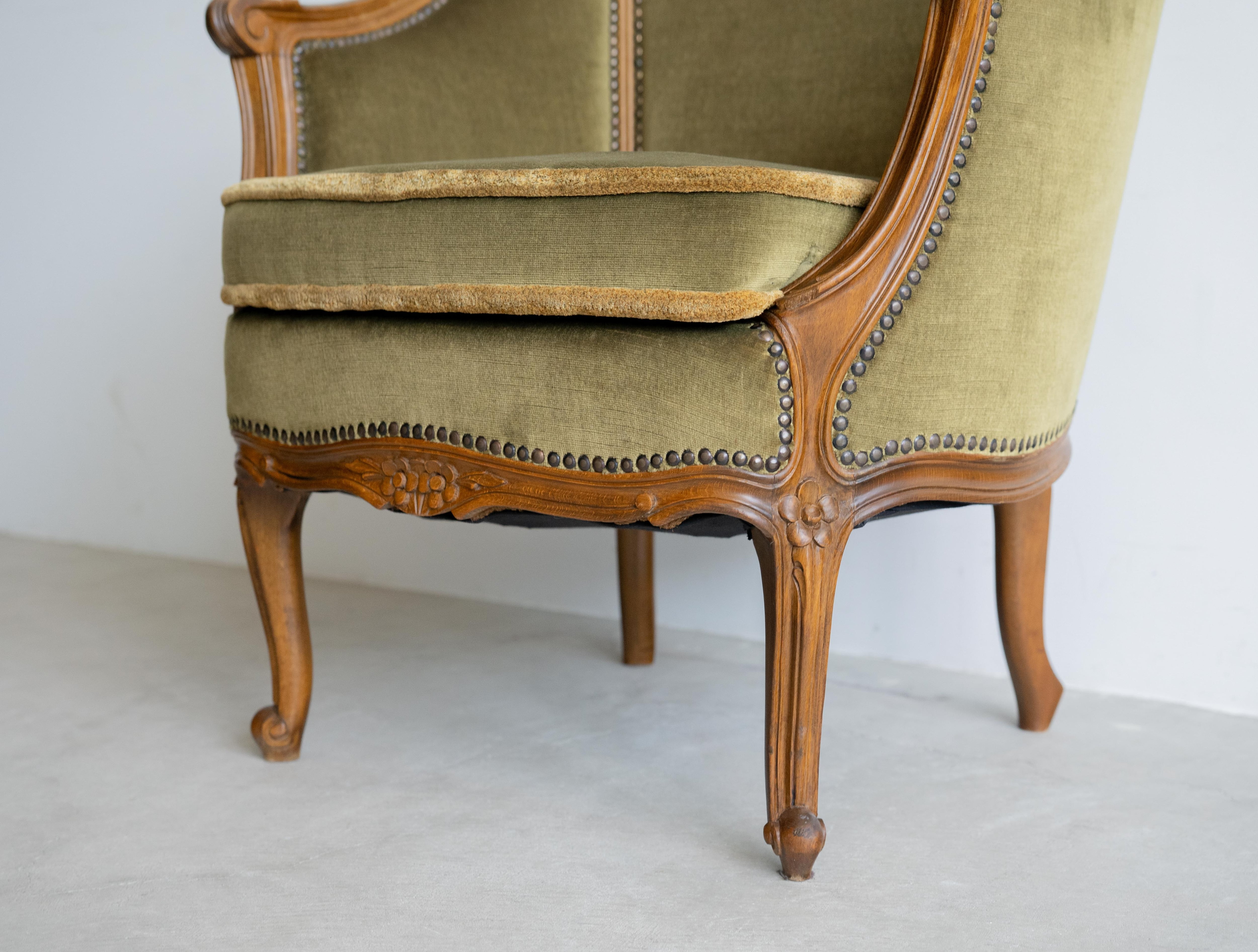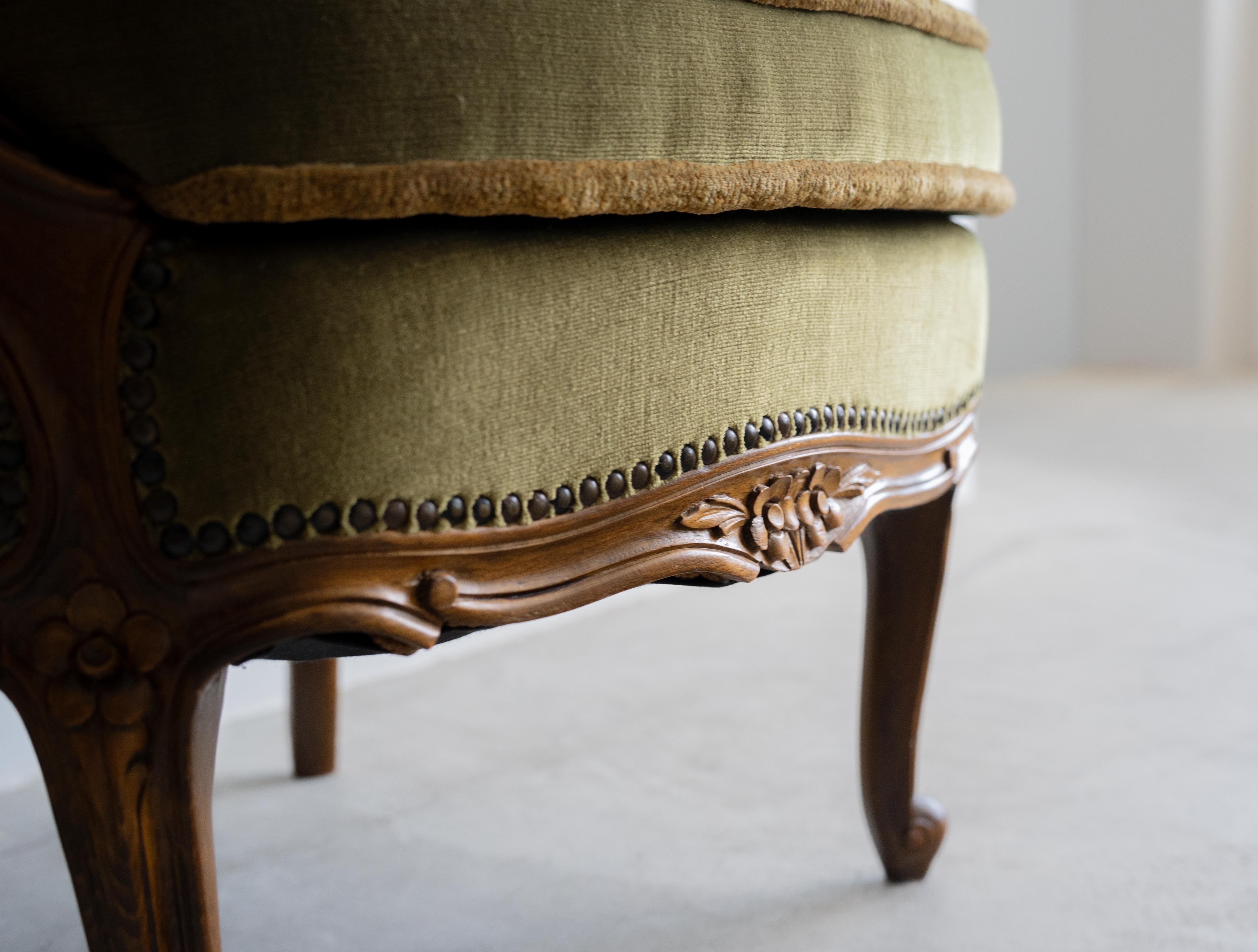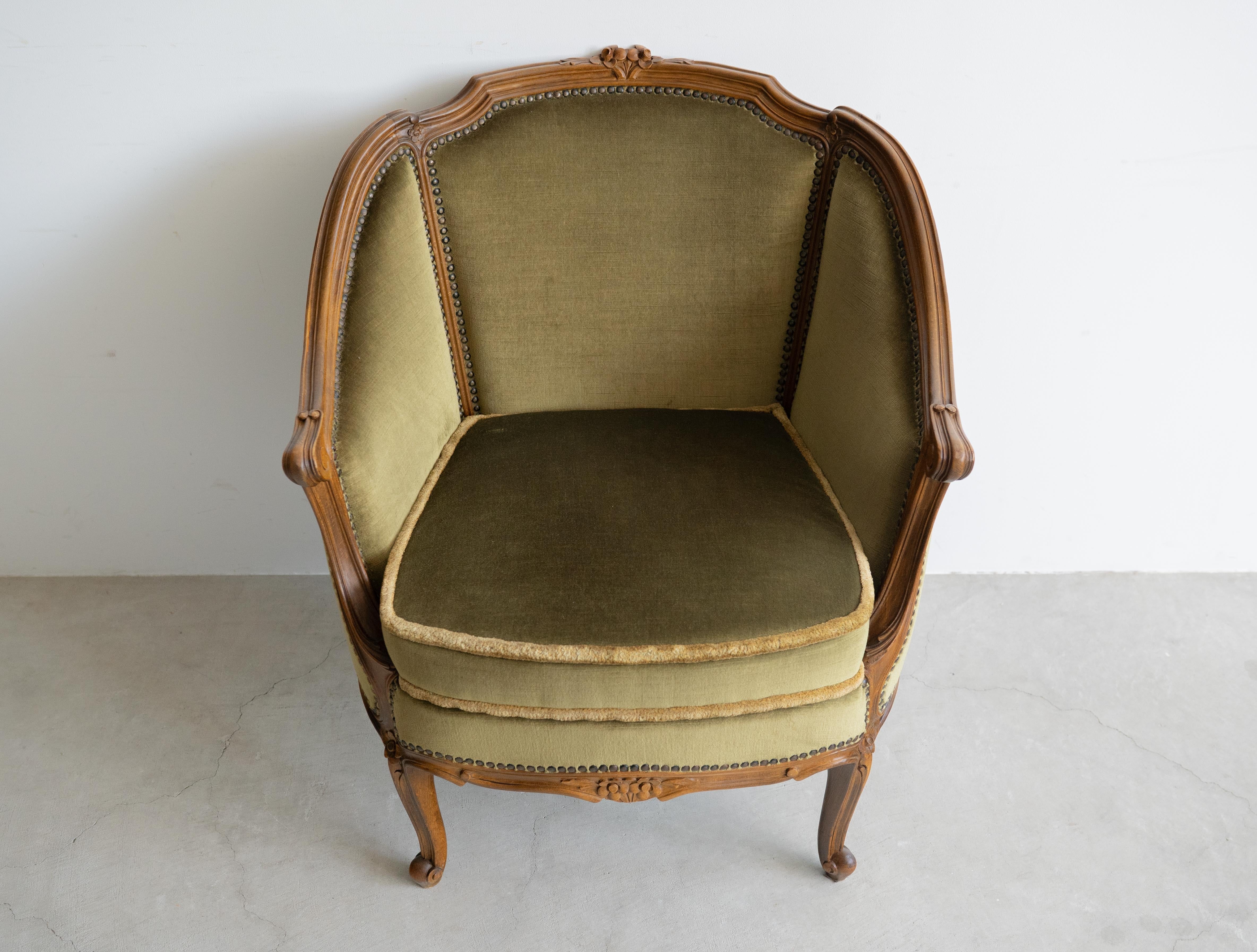 UKヴィンテージ グリーンモケットのサロンチェア ワンシーター