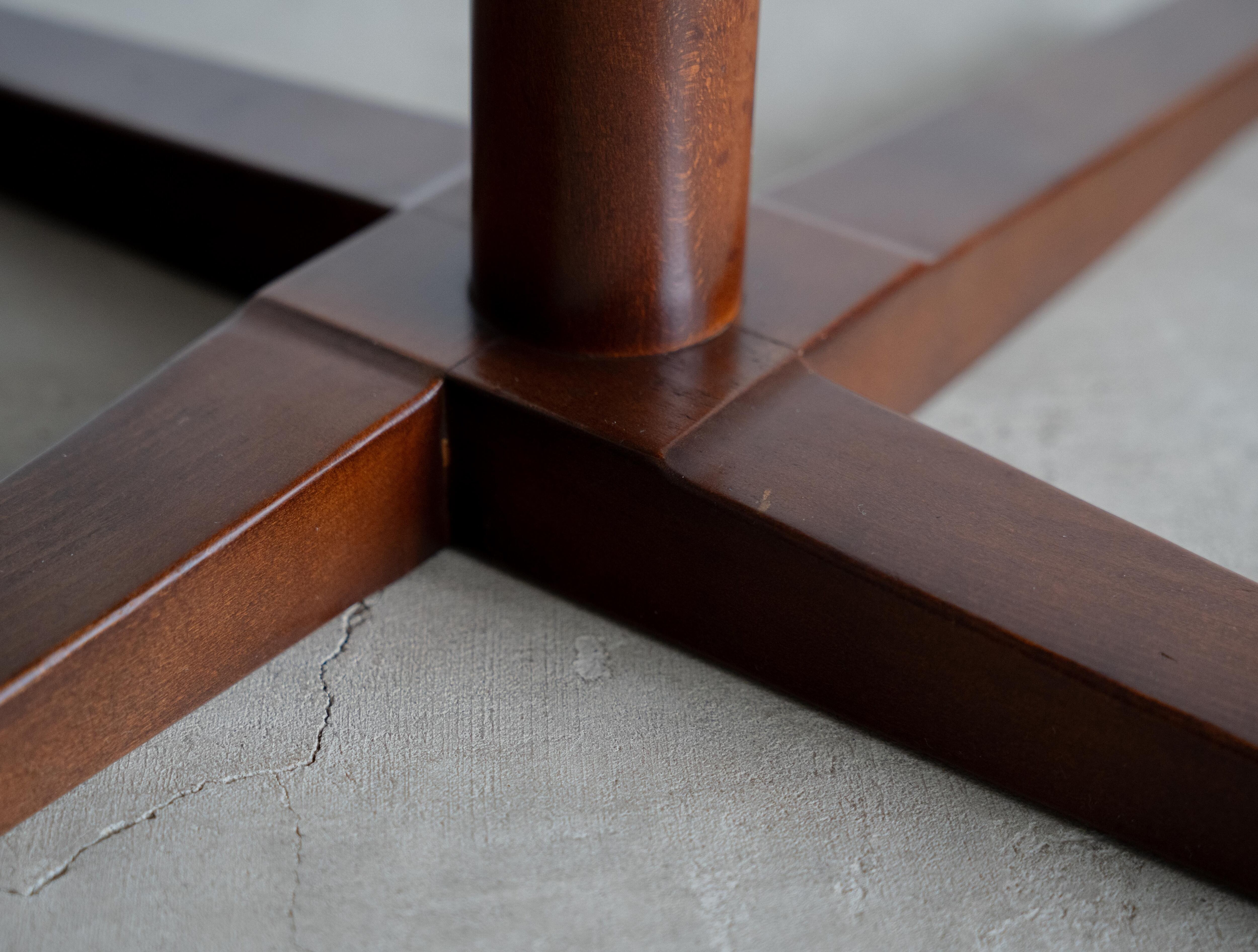 弊社にて天板および脚部をクリーニング、ポリッシュ、オイルフィニッシュのメンテナンス済み。