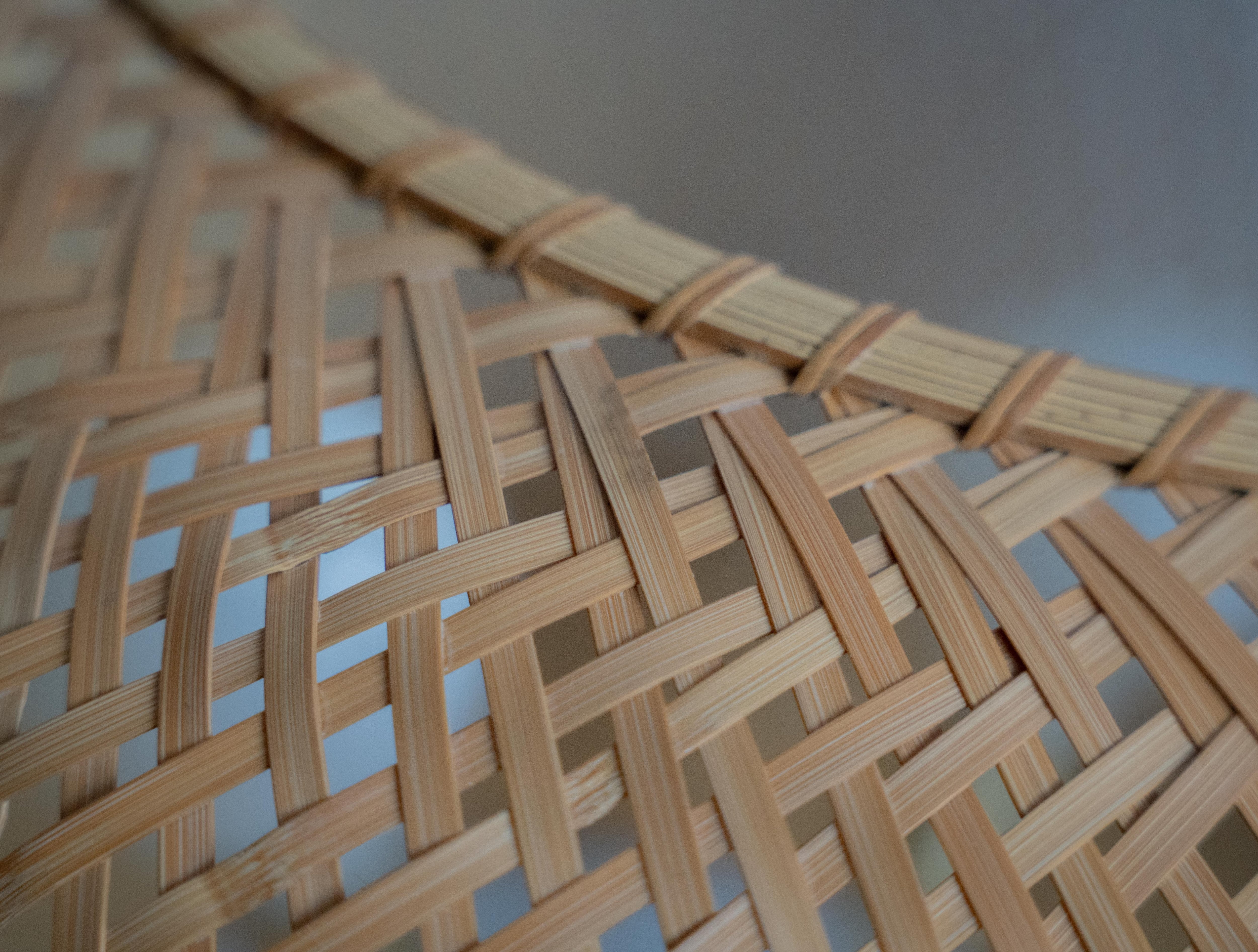 竹の表面をあえて内側に用いることで、素材本来の張り感としなやかさが引き出され、有機的で美しい曲線フォルムが生まれています。