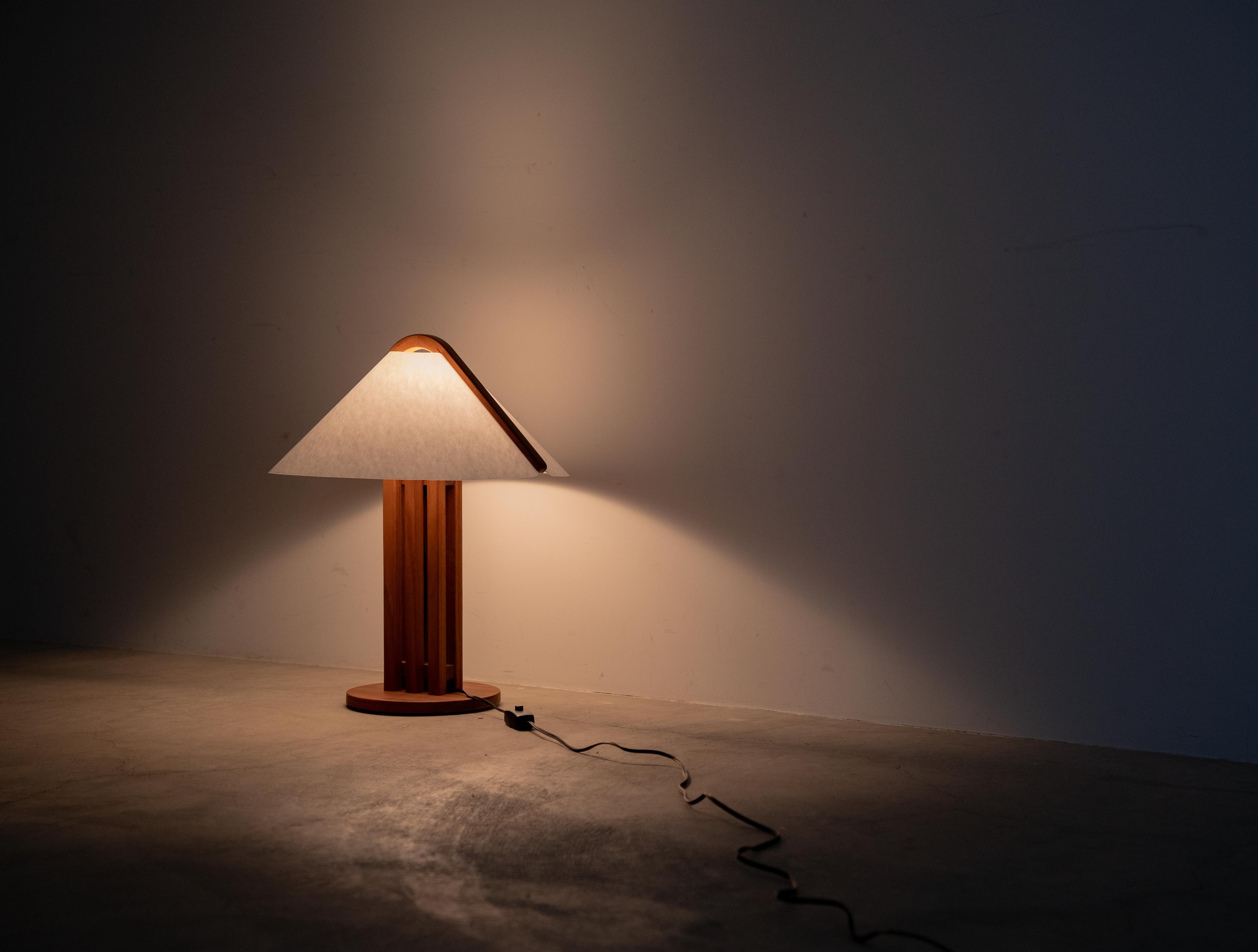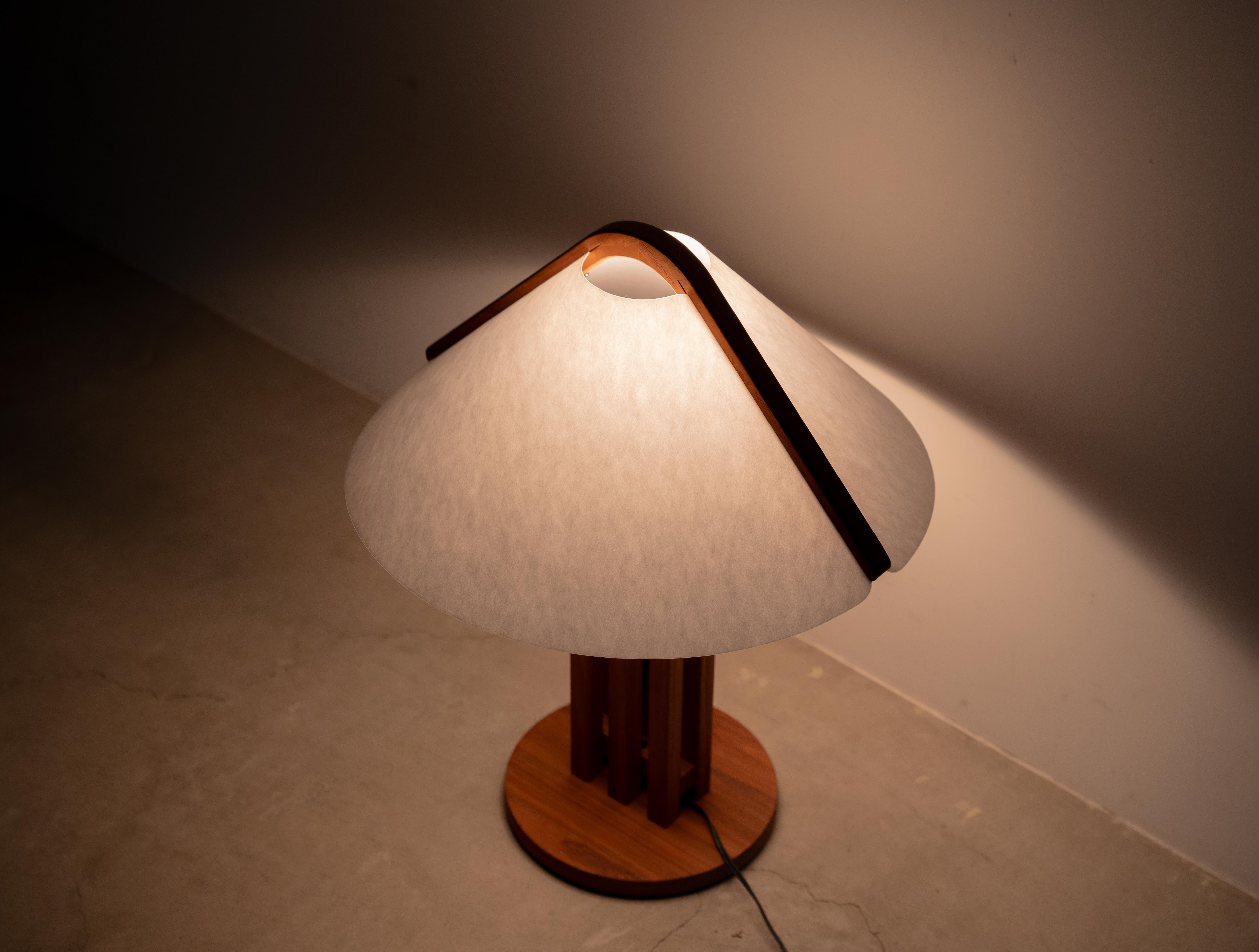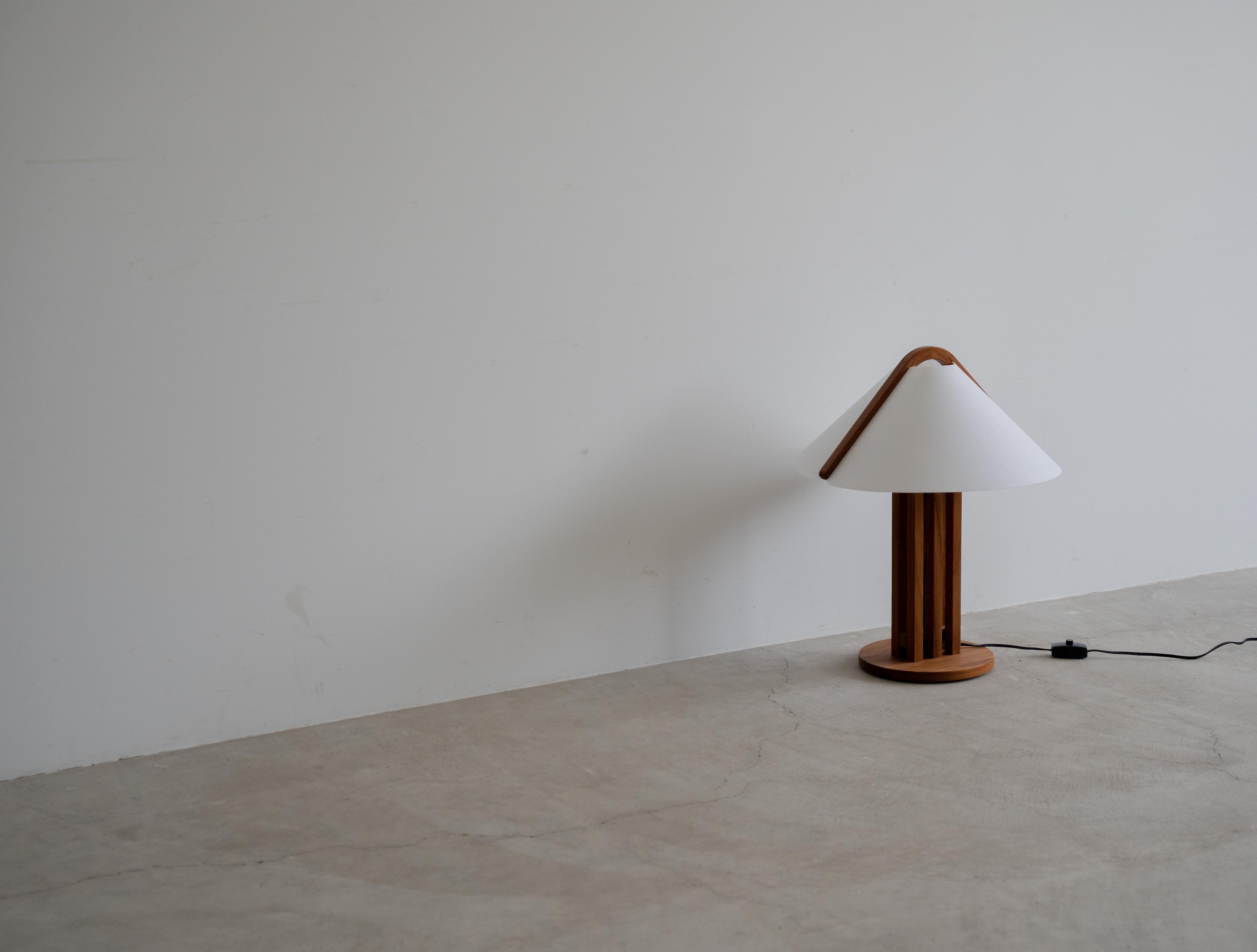シェードには、ドムス社が誇る独自素材「Lunopal(ルノパール)」を採用。木材由来のセルロースを主原料としたこの素材は、和紙のように柔らかな光を周囲に広げ、デスク上やベッドサイドを優しく照らします。高い耐久性とメンテナンス性を持つため、日常的に手に触れる機会の多いテーブルランプとして、極めて実用的な仕様となっています。