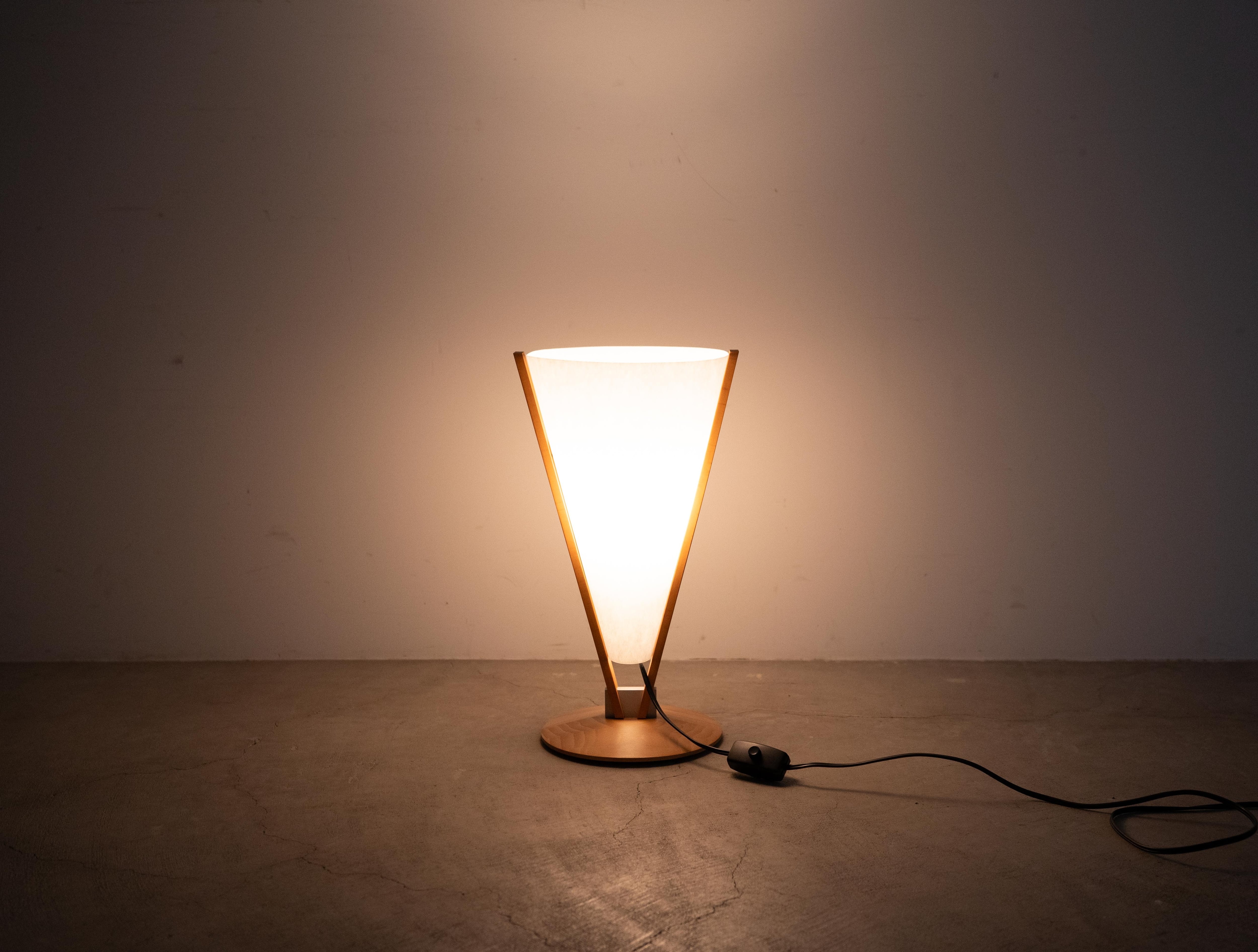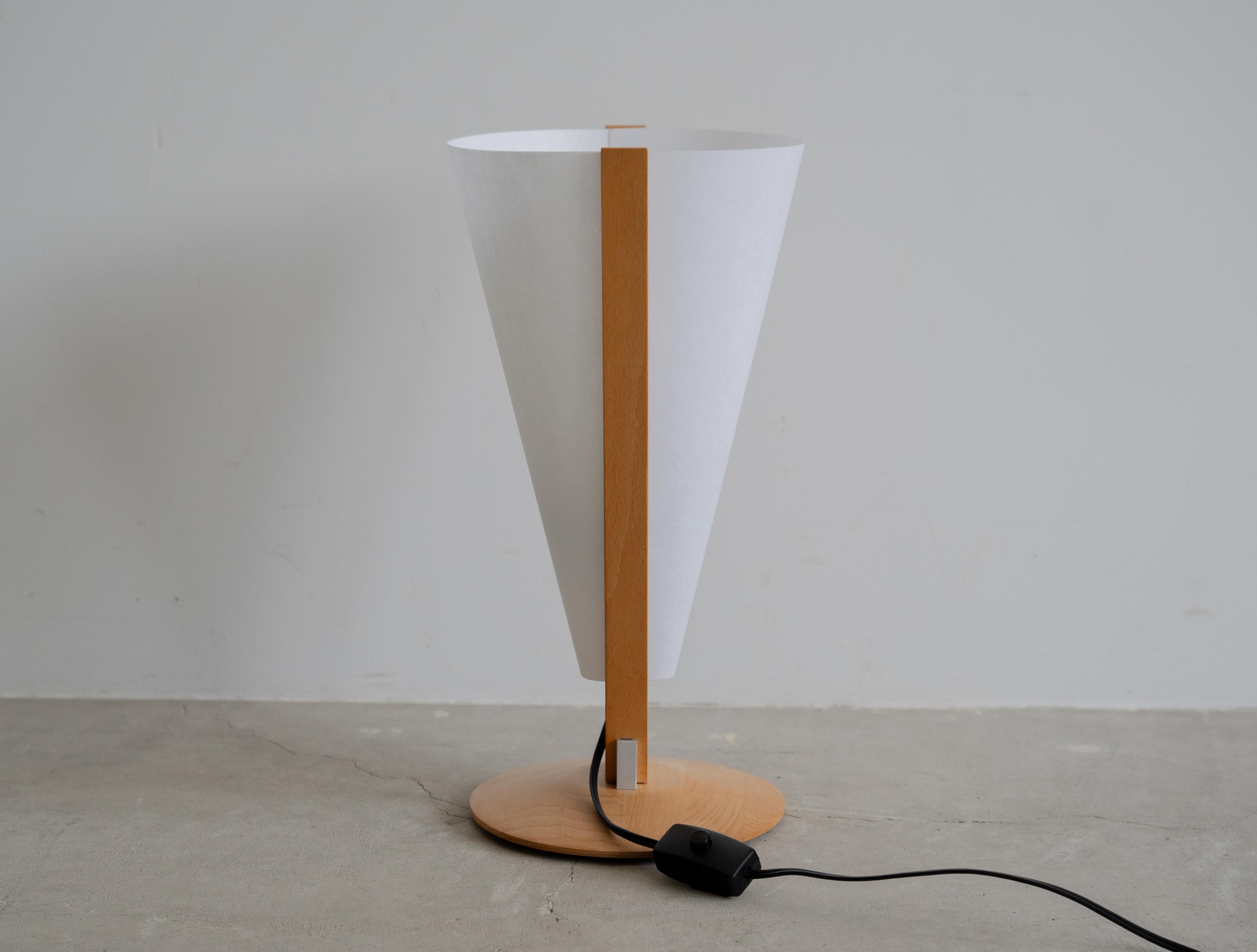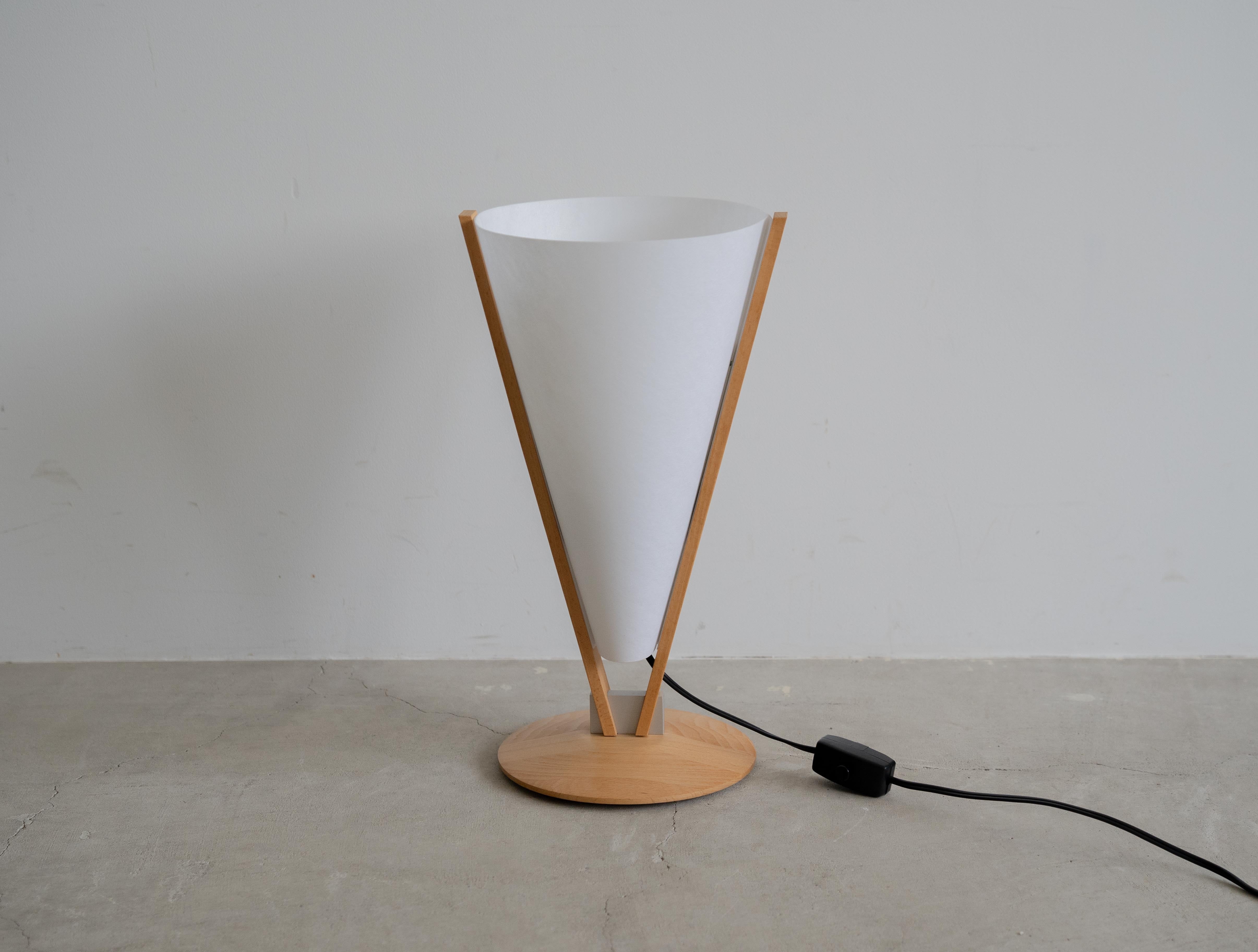 逆円錐形のシェードを高品質な天然木のフレームが支える独創的なフォルムは、同社の掲げる「生活のためのあかり」という理念を具現化しており、卓上にアーティスティックな存在感をもたらします。