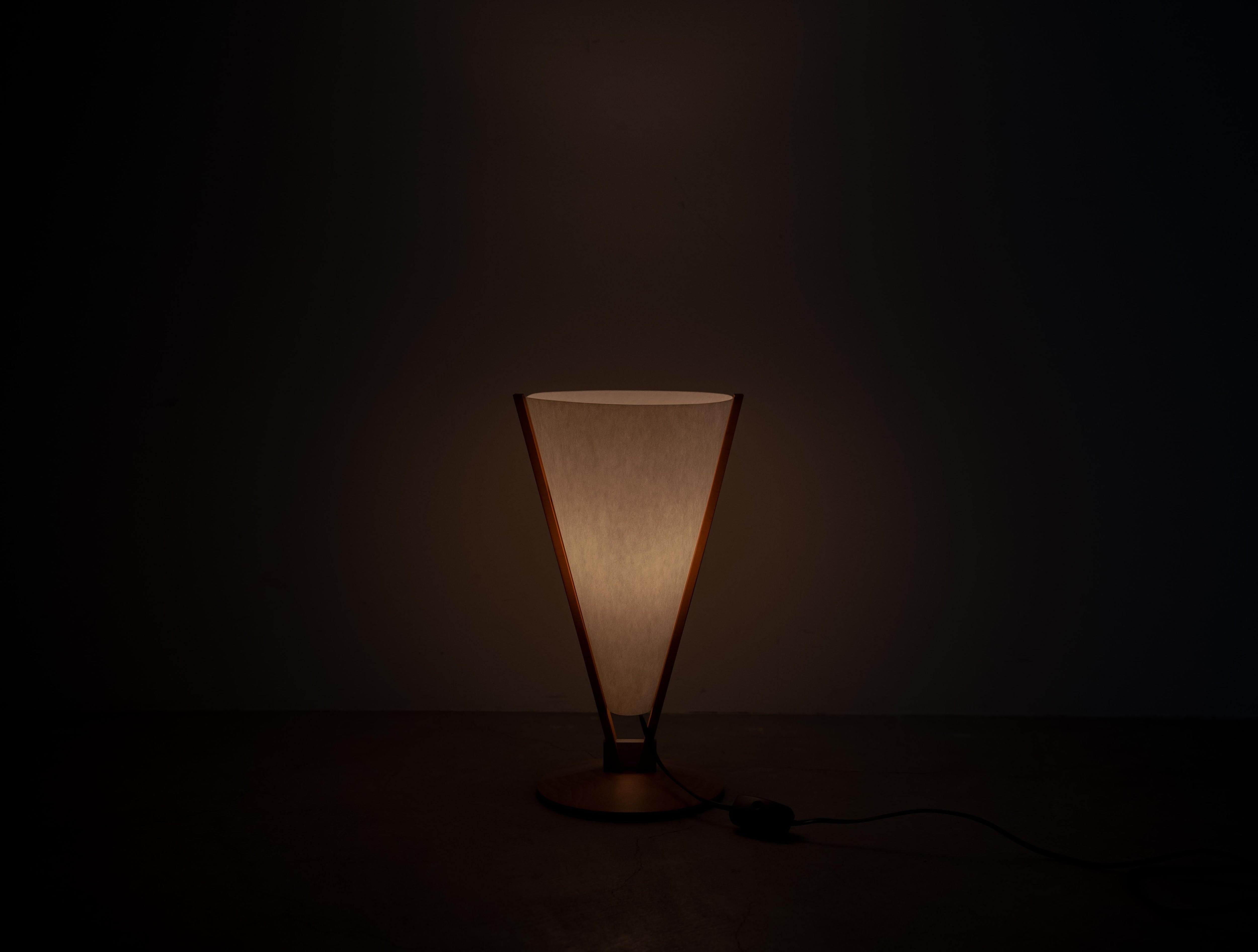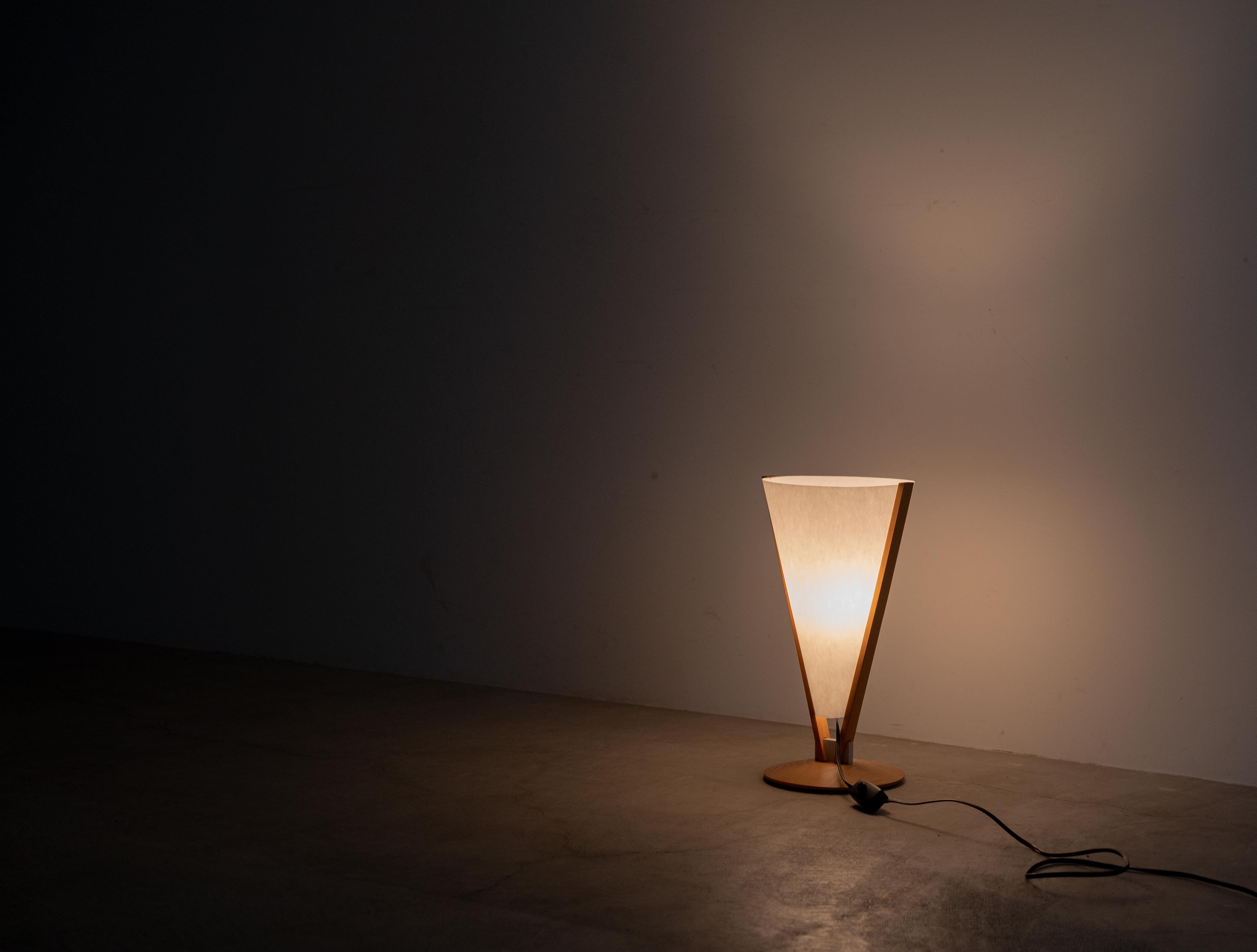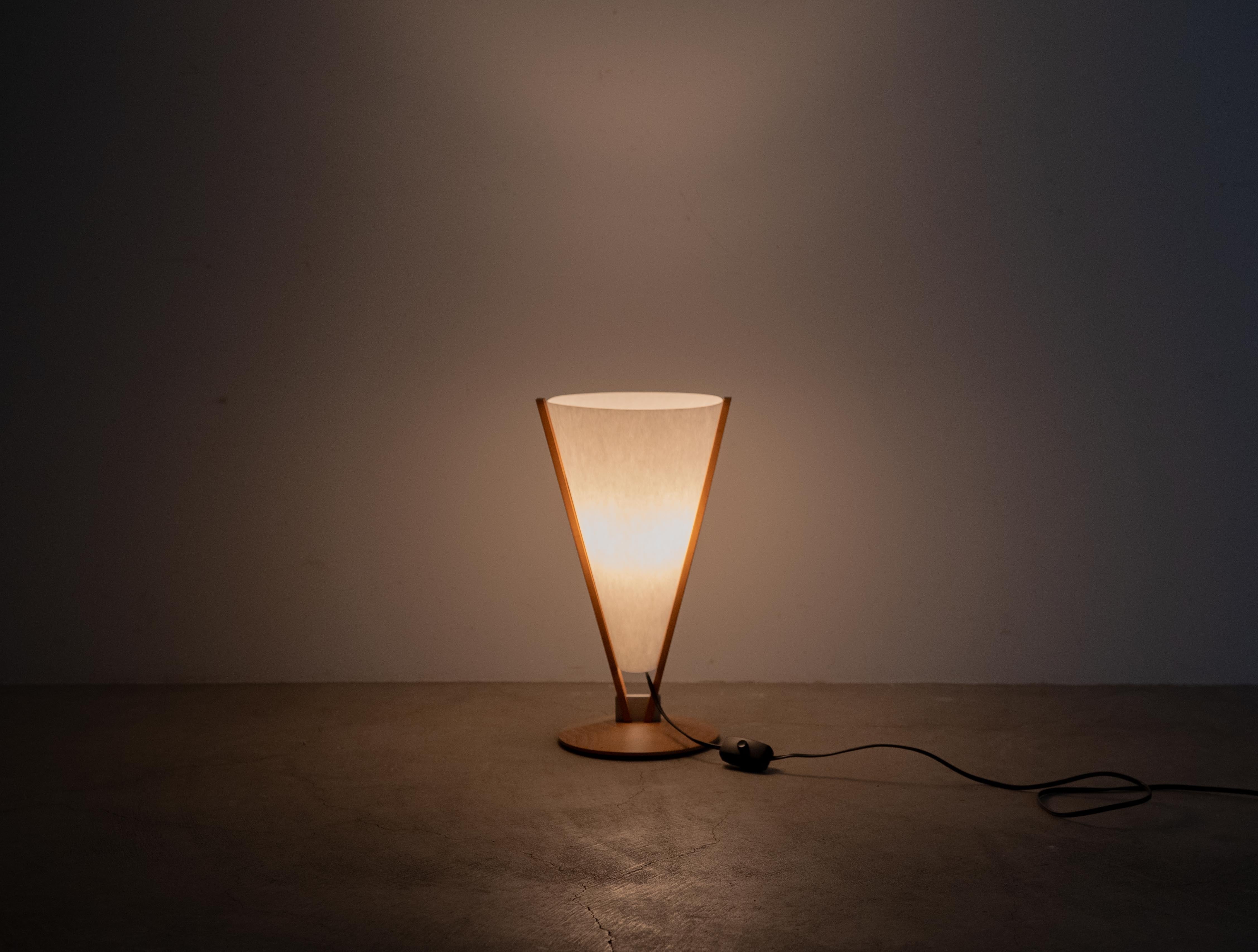 逆円錐形のシェードを高品質な天然木のフレームが支える独創的なフォルムは、同社の掲げる「生活のためのあかり」という理念を具現化しており、卓上にアーティスティックな存在感をもたらします。