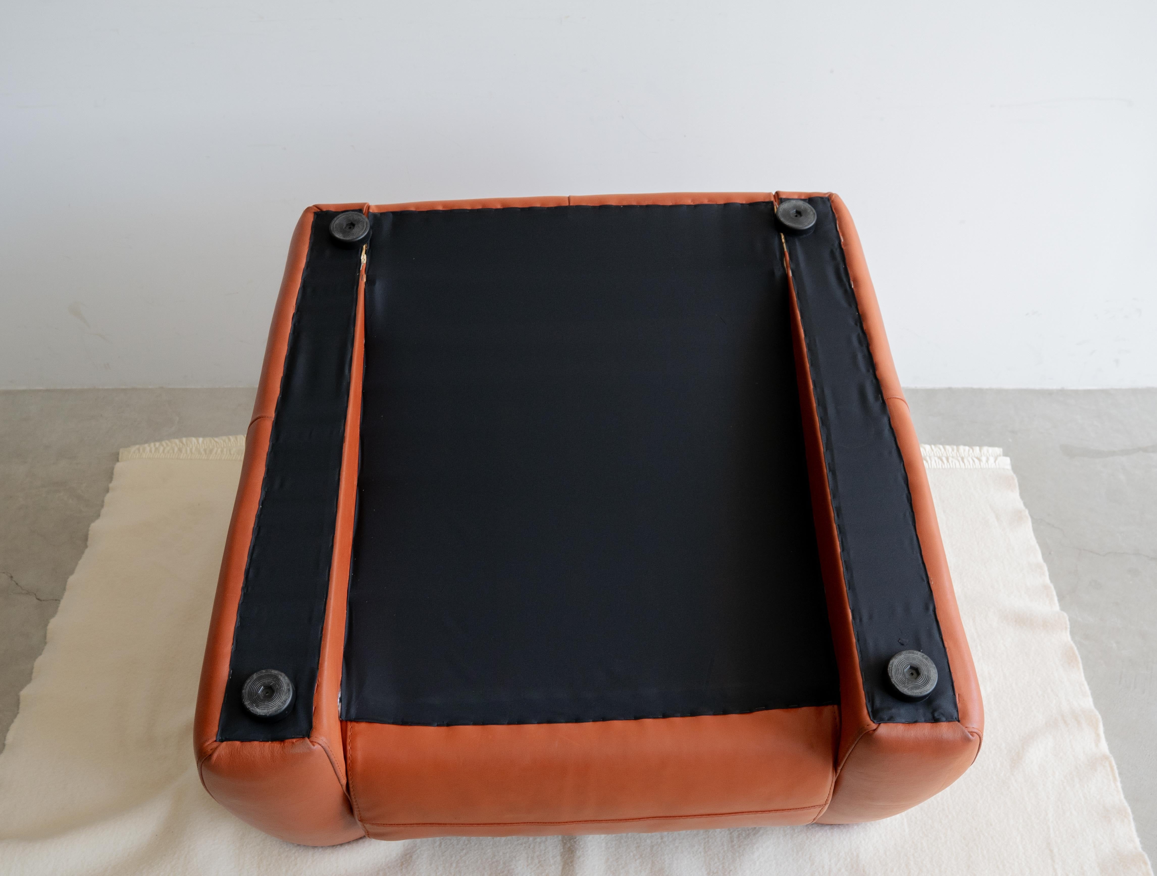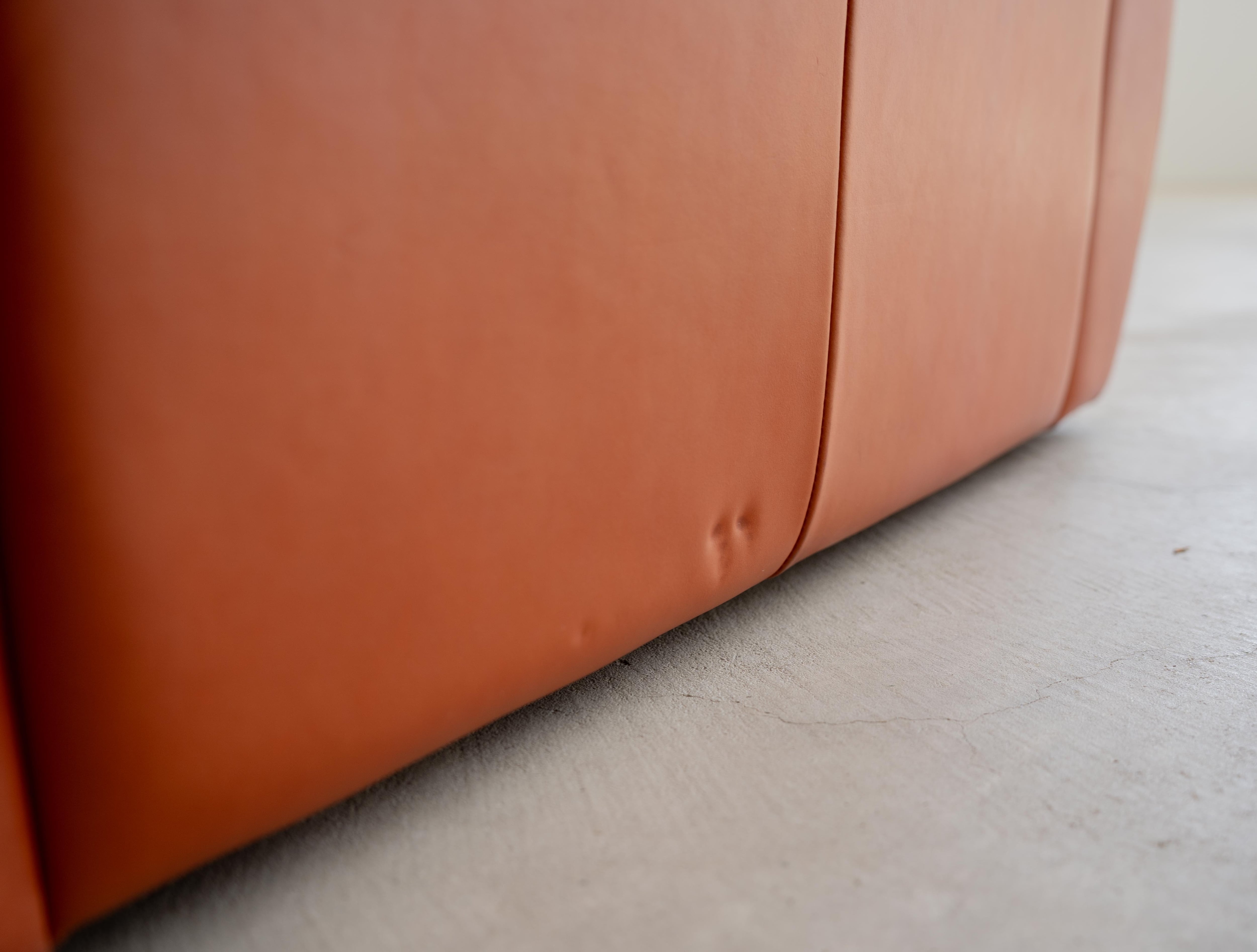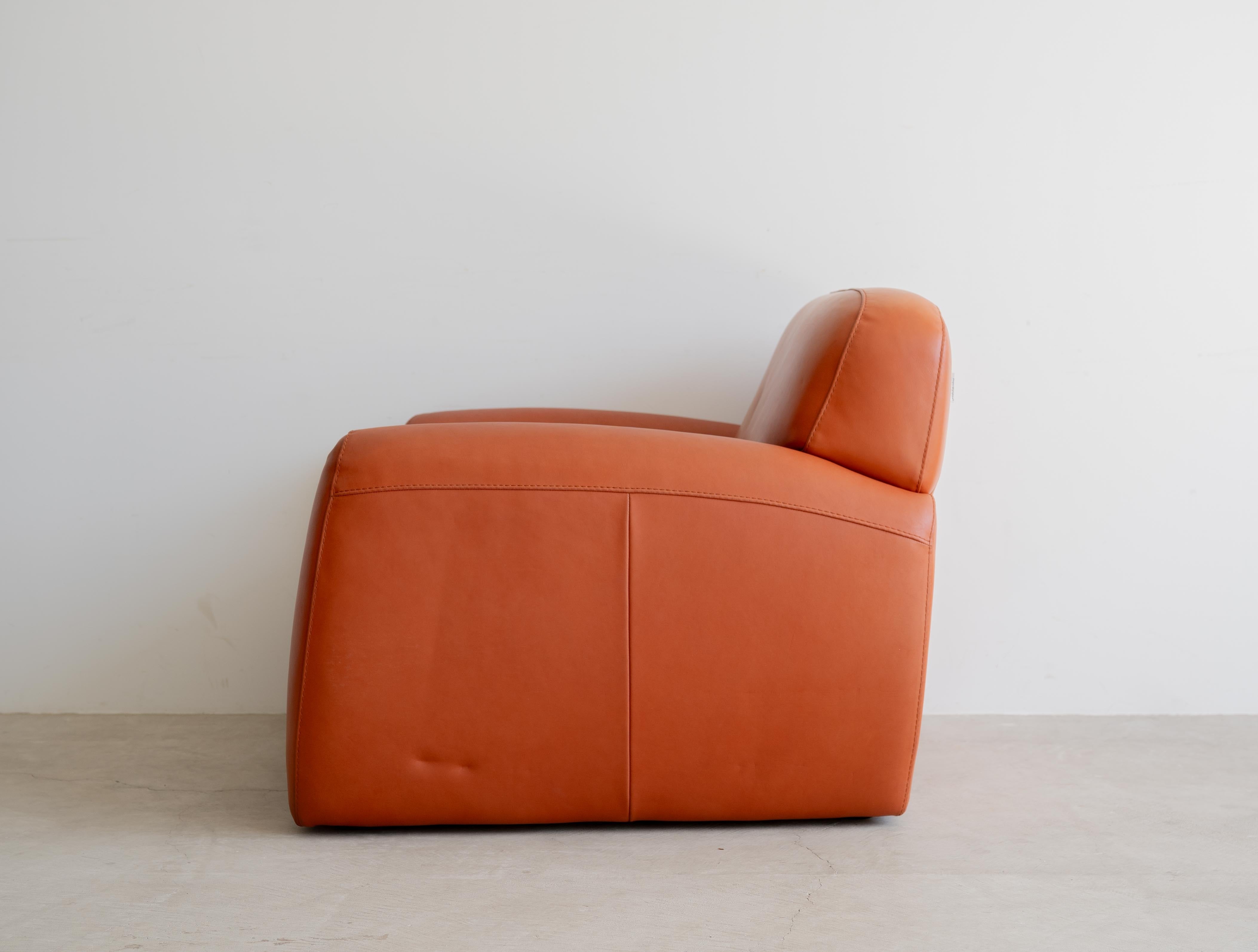 使用されている上質なイタリアンレザーは肉厚でしっとりとした肌触りが魅力で、角を削ぎ落とした柔らかで優雅な丸みのあるフォルムは、重厚なシルエットでありつつも圧迫感を与えることなく、空間に柔らかな気品と余裕をもたらします。