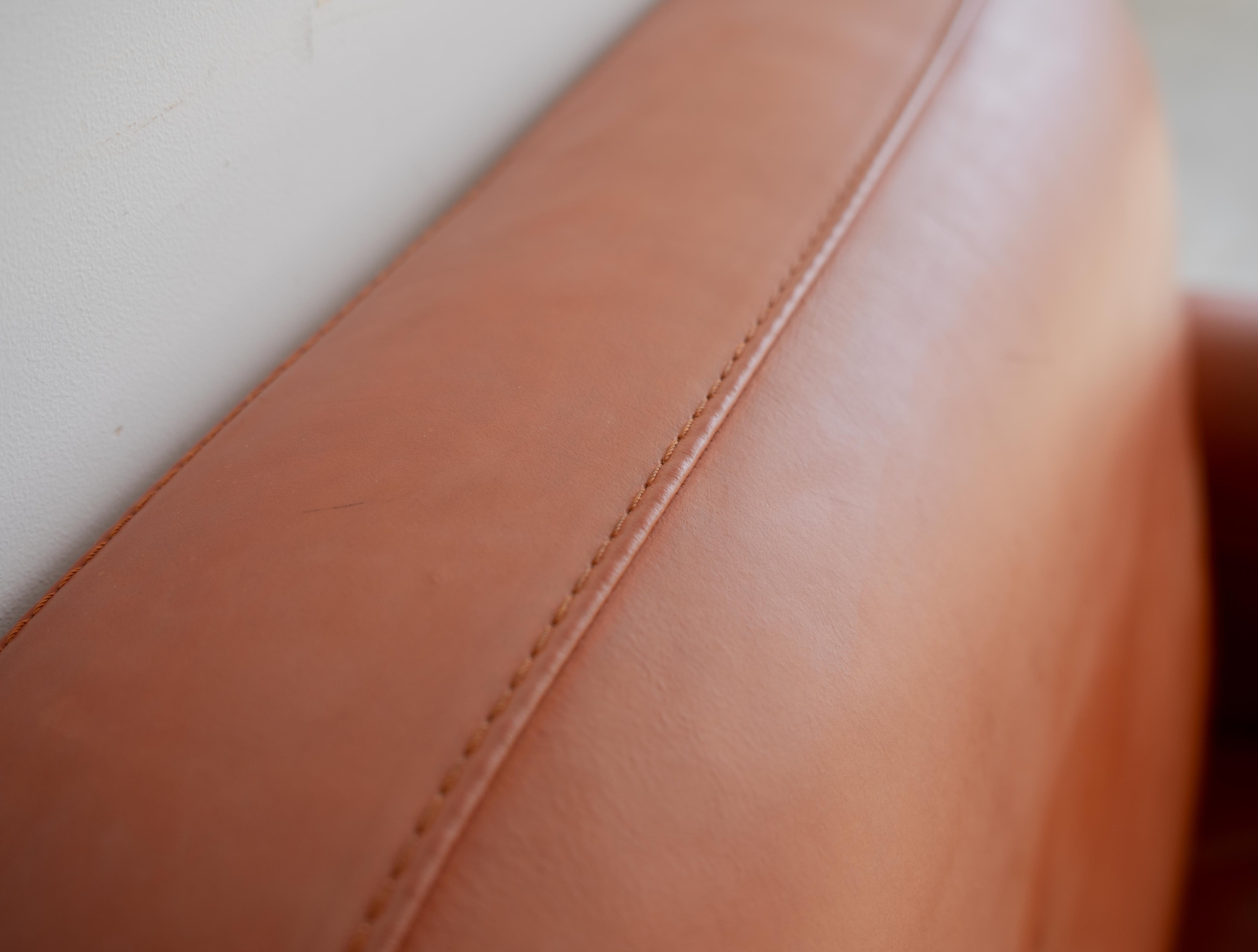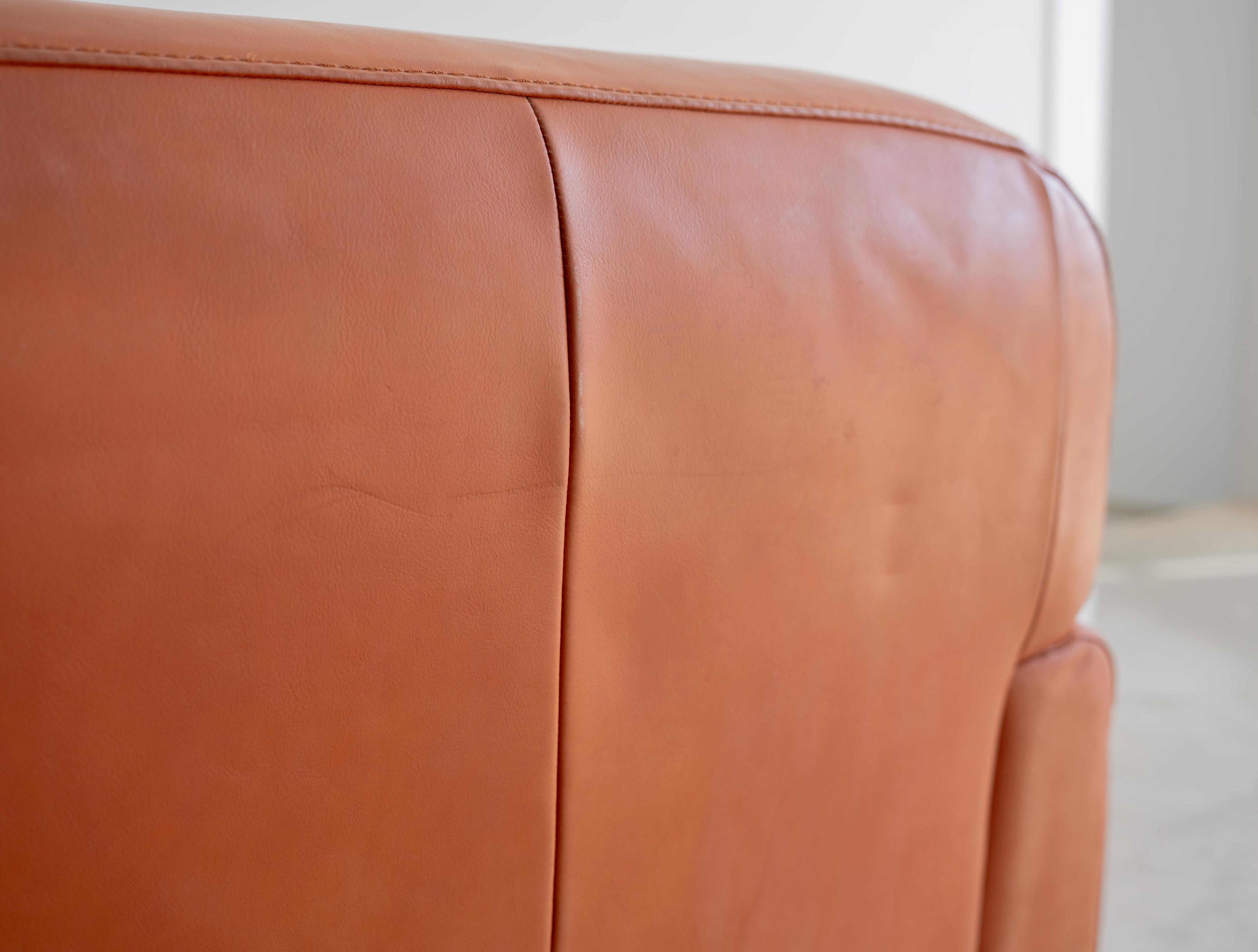 使用感に伴う細かなレザー部分の凹みや傷、シミはございますが、レザーならではの経年変化の味としてお楽しみいただける風合いとなっております。詳しくは画像にてご確認ください。表面的な使用感はあるものの、クッション自体に目立ったヘタリはなくこのソファならではの肉厚な座り心地と専有感をご体感いただけます。
