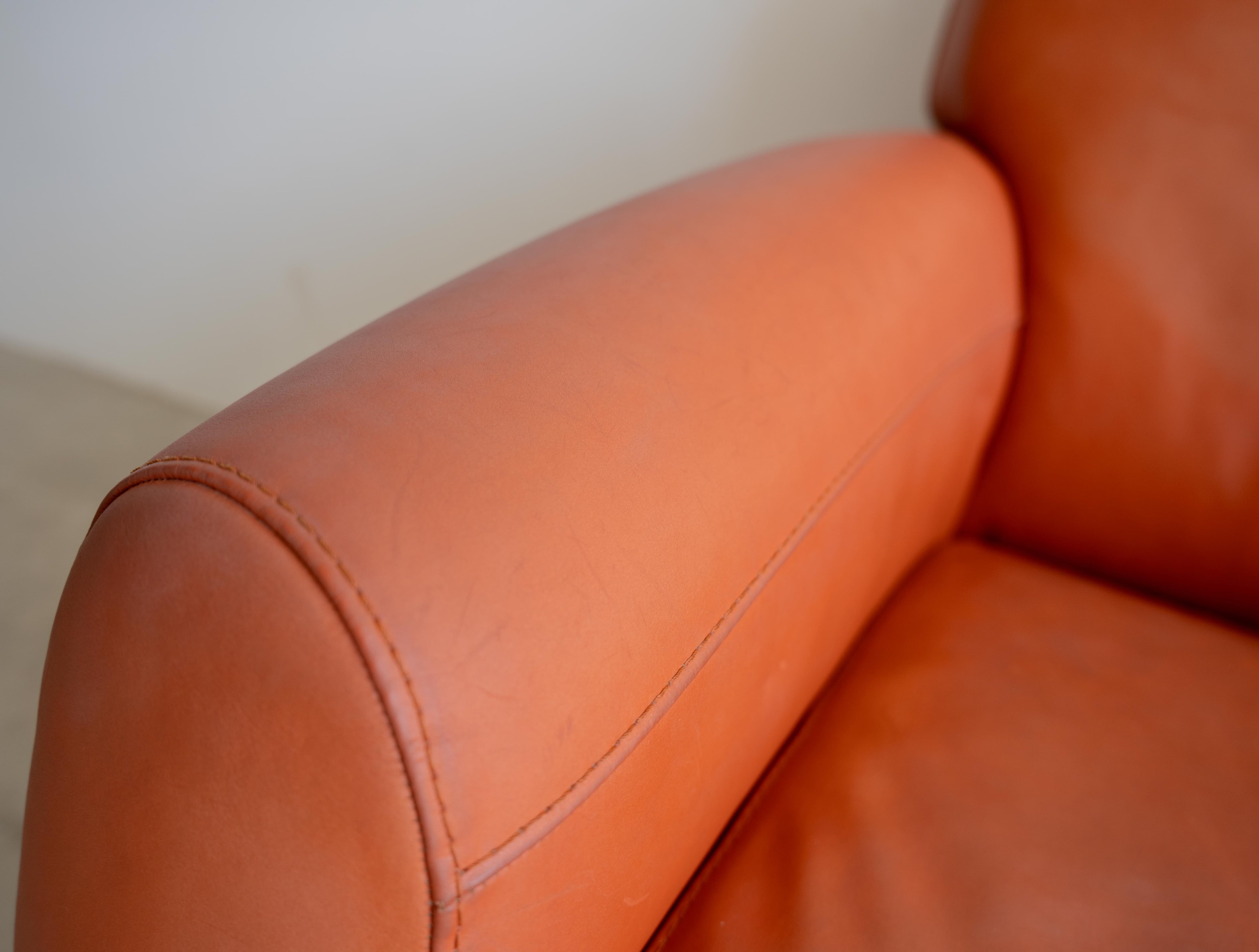 イタリアらしい力強さと包容力を兼ね備えた、モダン・ラグジュアリーを体現する一脚ですが、本革の味わいが出た独特な存在感です。
