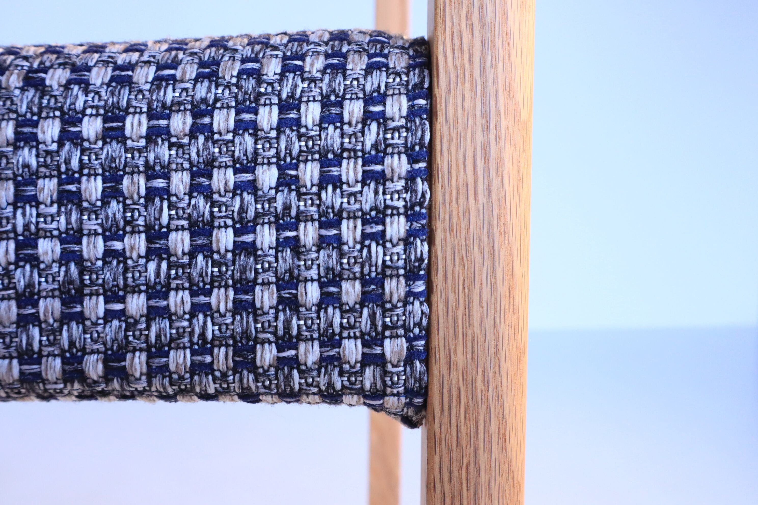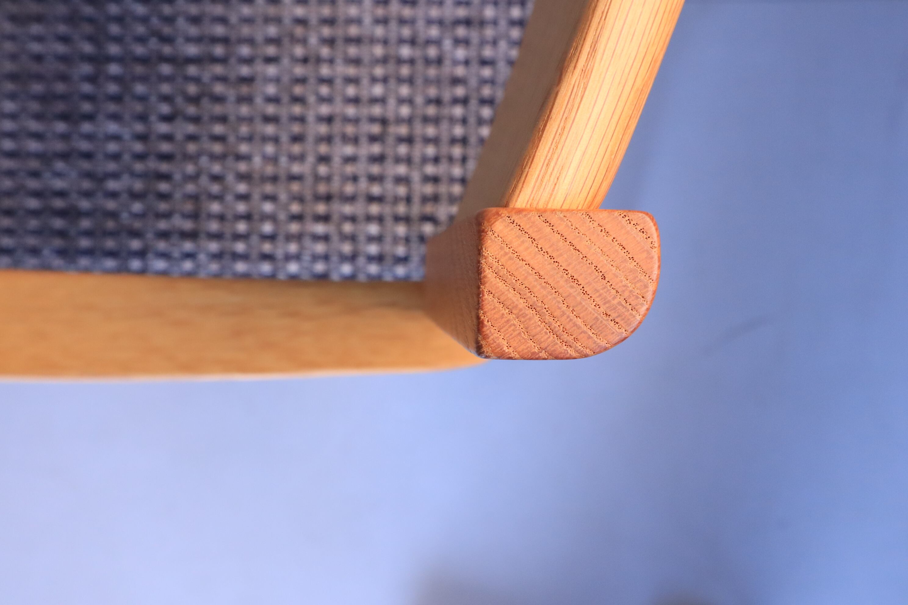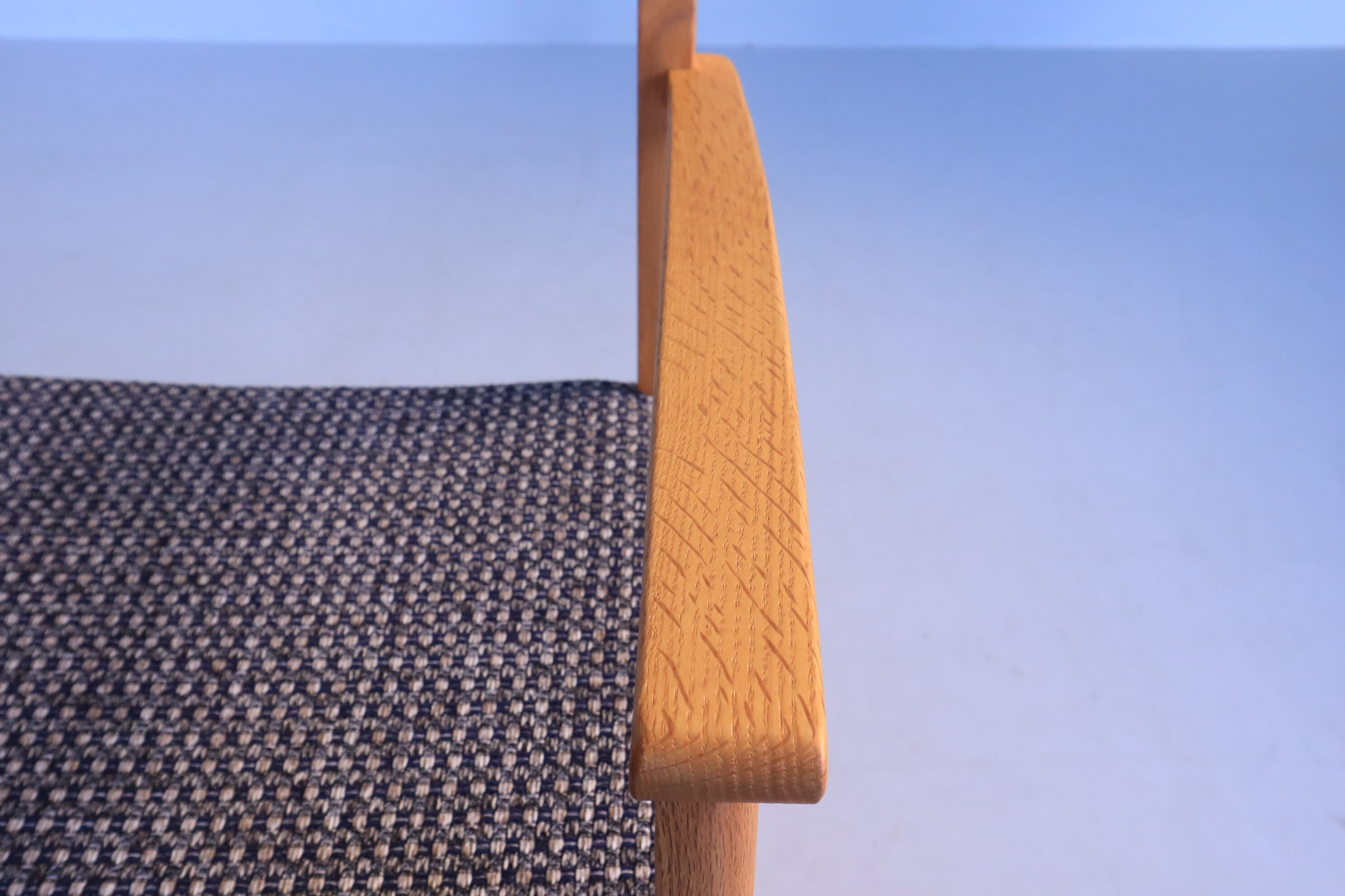 一見直線的ですが要所で緩やかなカーブを持たせてあり、ひじ掛けの位置も高すぎず低すぎず、軽やかな座り心地で立ち上がりも軽快な使える一脚です。