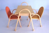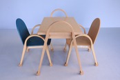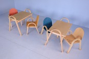 背、座一体型プライウッドとベントウッドフレームの組み合わせによる北欧的デザインは角が立っていない優しい手触りで子供用ながらスタイリッシュなフォルムが目を引きます