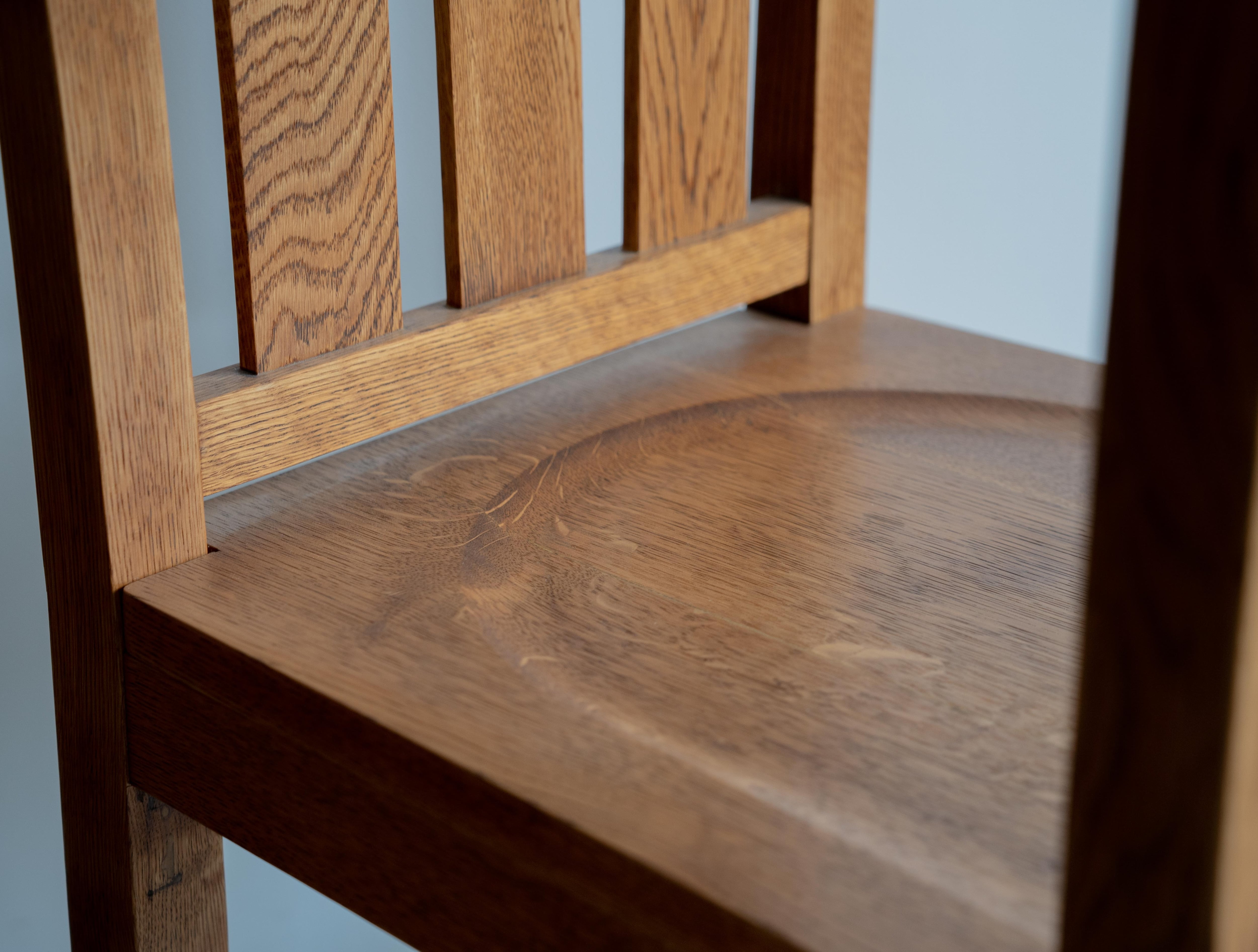 樫無垢材によるライティングチェア、フルレストアしたアンティーク品2脚セット。