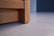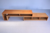オーク無垢材(仕切り板と下段底板は突板仕様)を5枚継手で組んだ本格木工家具は家具産地、福岡県大川市を拠点とする同社ならではのハイクオリティ、ノーマルな小型ボードにL字のボードをランダムに組み合わせ、お好みのスタイルで使用できる、ユーザー目線に立った実用性の高いモデルです。