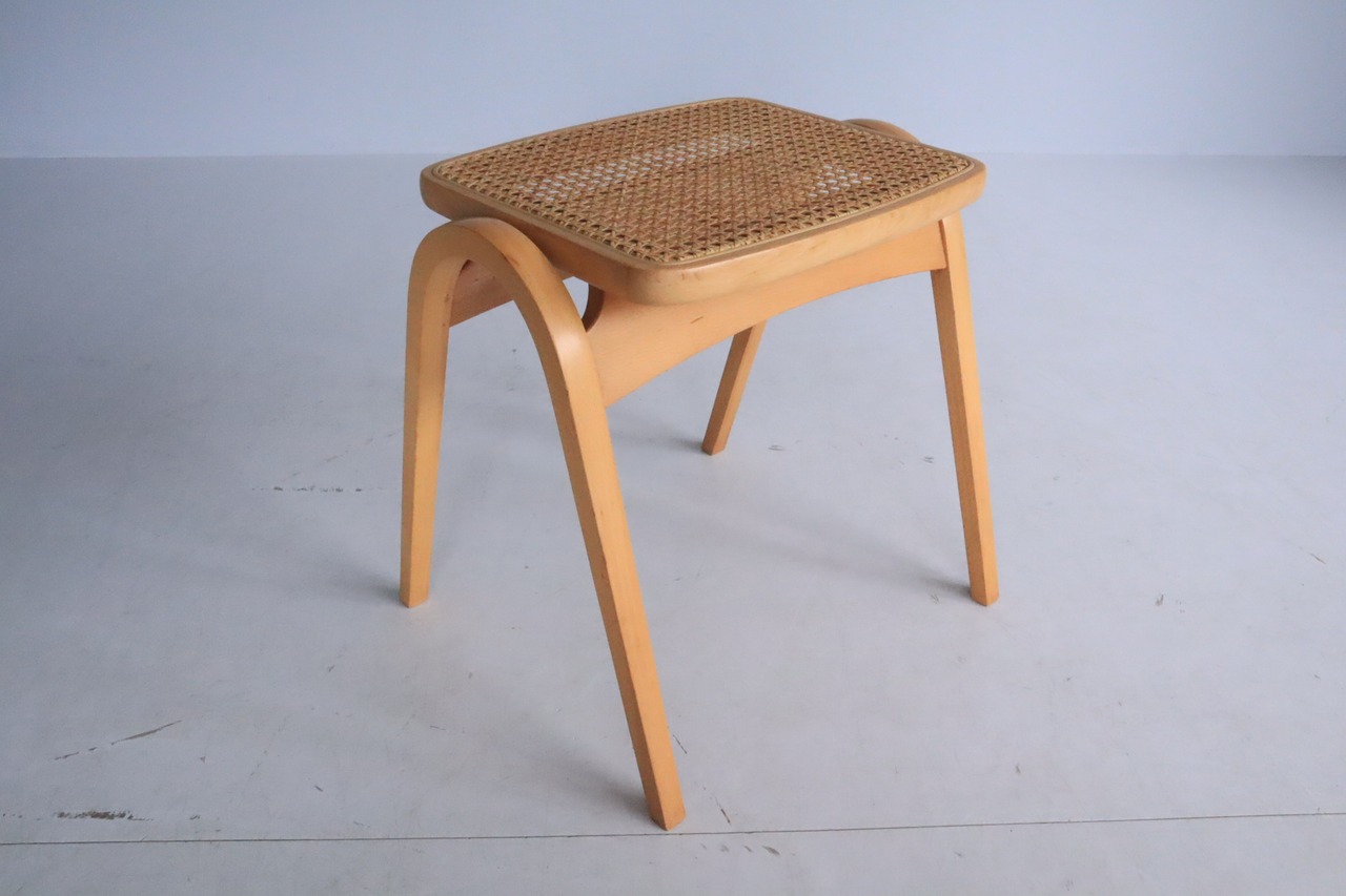 ジャパニーズモダンヴィンテージとして人気のアイテム、剣持勇デザインの秋田木工スタッキングスツールラタンバージョン、現行の復刻モデル中古品1脚になります。