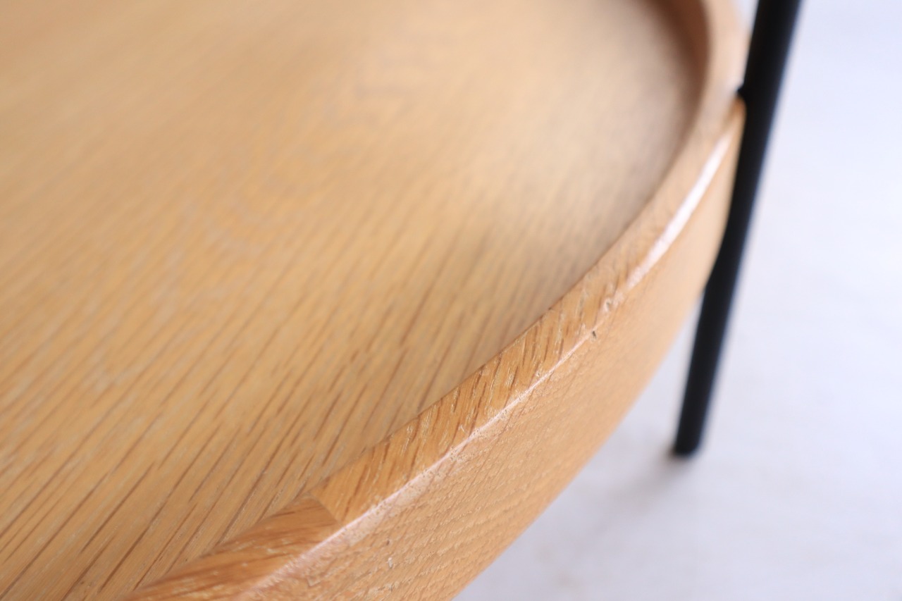 69センチ直径の天板は円形で定位置を決めないイージーなポジションでも取り回しが良く、高さ2センチのエッジはインテリアグリーンとも好相性、様々な用途でご使用いただけます。