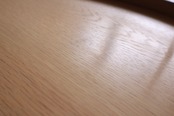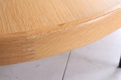 2段式の天板はオーク材突板仕上げ、エッジに削り出しの無垢材をフィンガージョイントで接いだ凝った仕様で、マットブラックに塗装されたレッグとのコンビネーションが実に今風な仕上がりです。