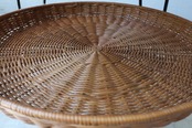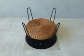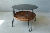 ブラック塗装されたスチールと天然素材であるラタンのコントラストが絶妙で、ラタン部分に雑誌や新聞、リモコン等の小物を収納したまま動かしながらランダムなポジショニングで使用できるフレキシブルなサイドテーブルです。