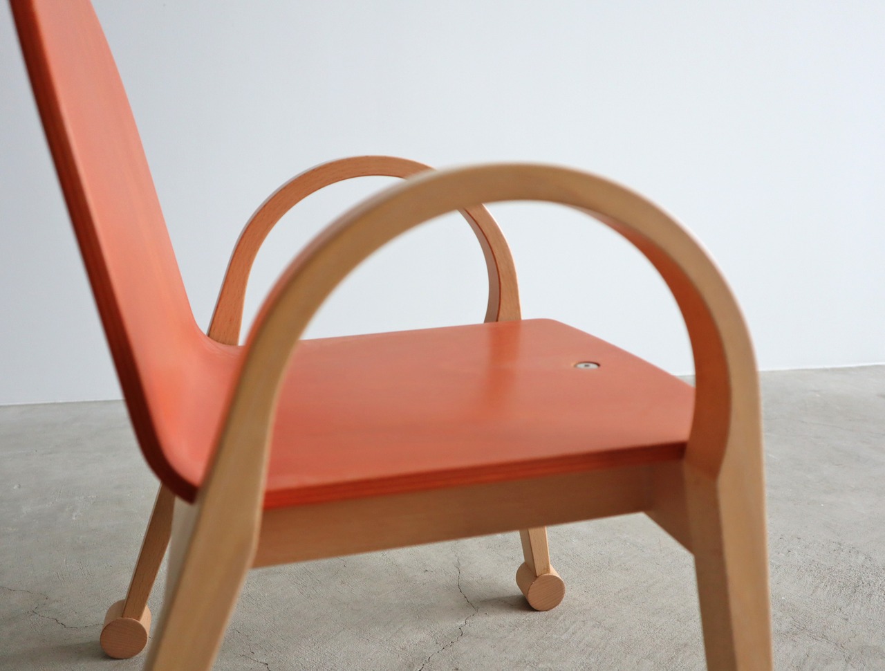 ナチュラルフィニッシュのベントウッドフレームによる北欧的デザインは角が立っていない優しい手触りで、子供用ながらスタイリッシュなフォルムが目を引きます。