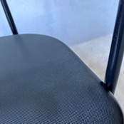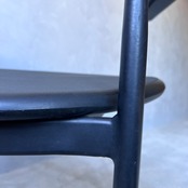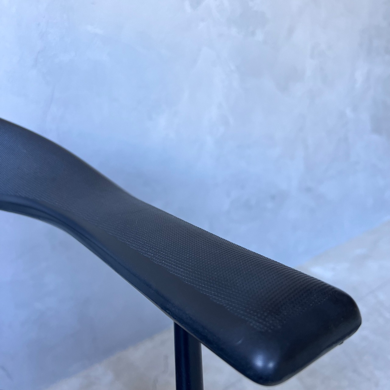 華奢なフレームに肉厚な背もたれ、浮遊感のある座面の組み合わせが特徴的なシルエットを生み出し、ラバークッションは思いのほか程よい弾力で特に背からひじ掛けにかけてのフィット感が快適、ダイニングチェアながら安楽度は高めです。