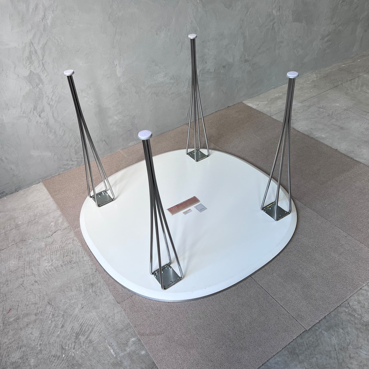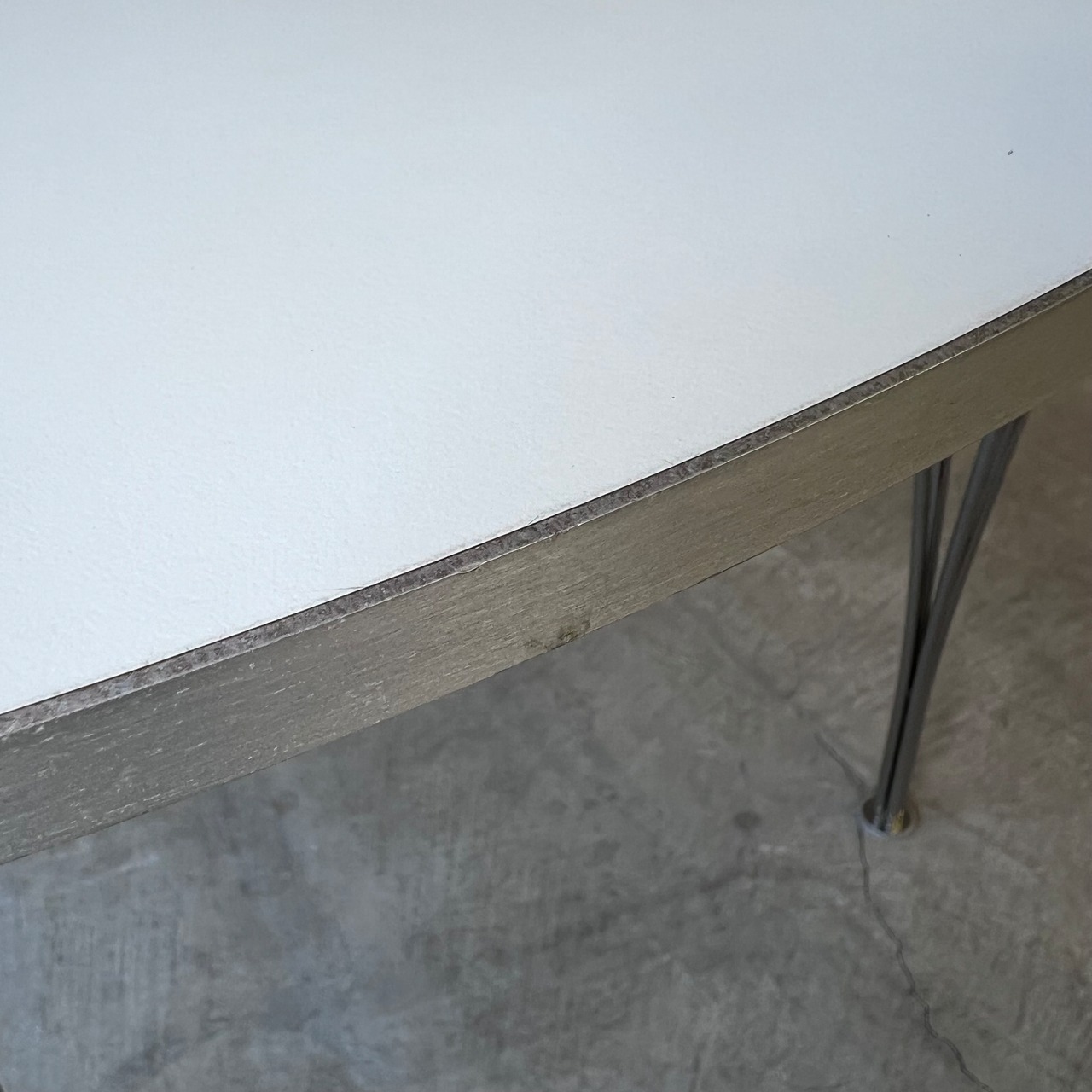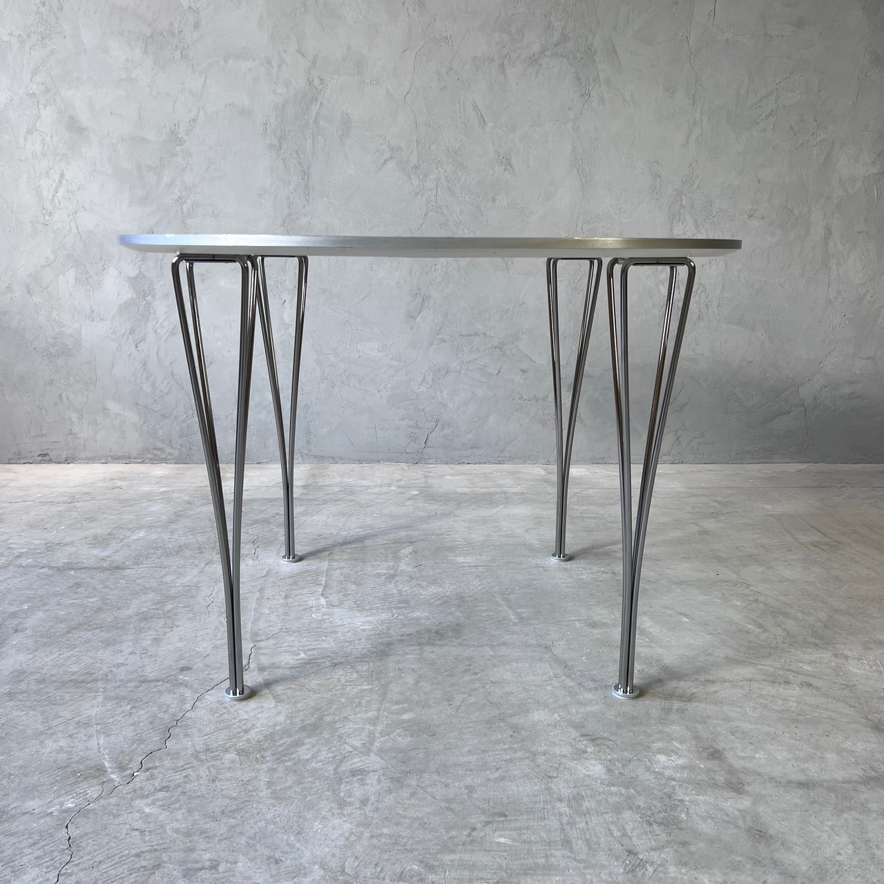 北欧家具の名作、スーパー楕円テーブルの正方形ベースバージョン B603、ホワイトラミネートトップ×クロームレッグの最もオーソドックスなモデルになります。