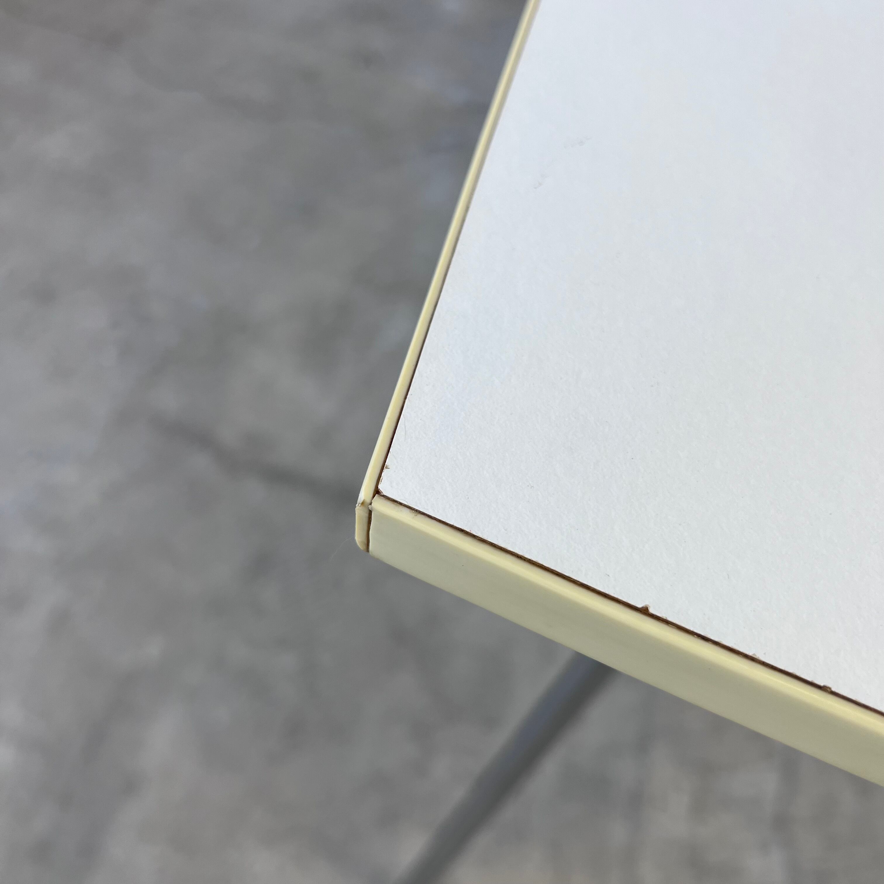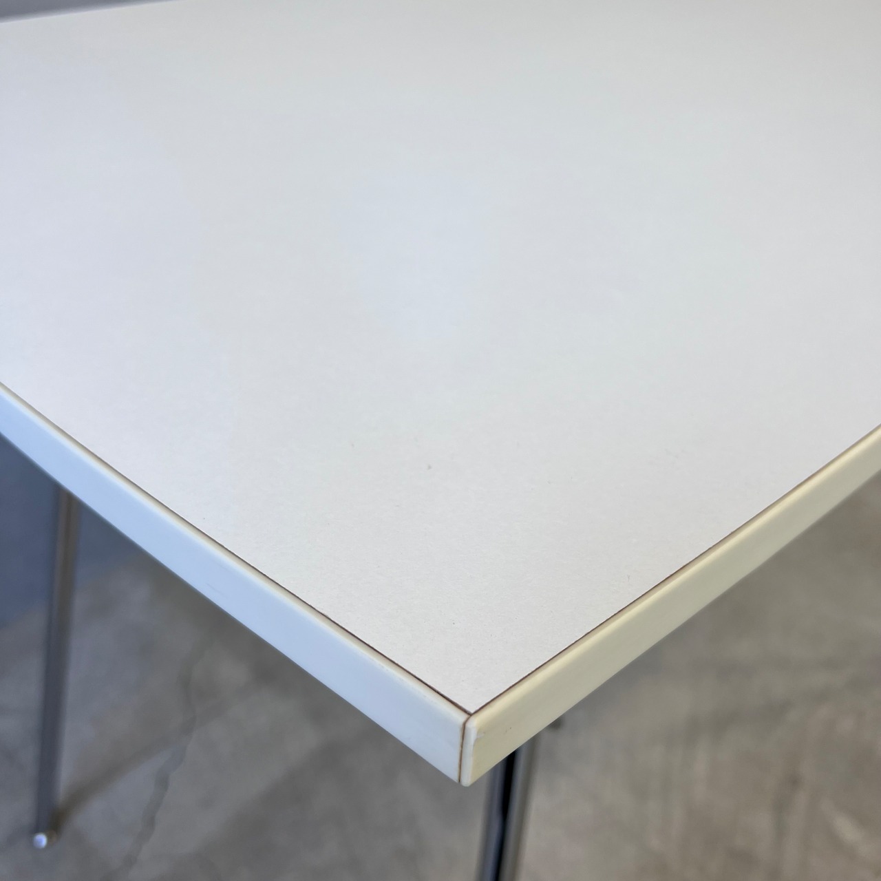 ダイニングは正方形ベース、コーヒーテーブルは長方形ベースという印象が強いシリーズですが、こちらは長方形ベース天板のダイニングテーブル、天板小口がオフホワイトのレアモデルになります。