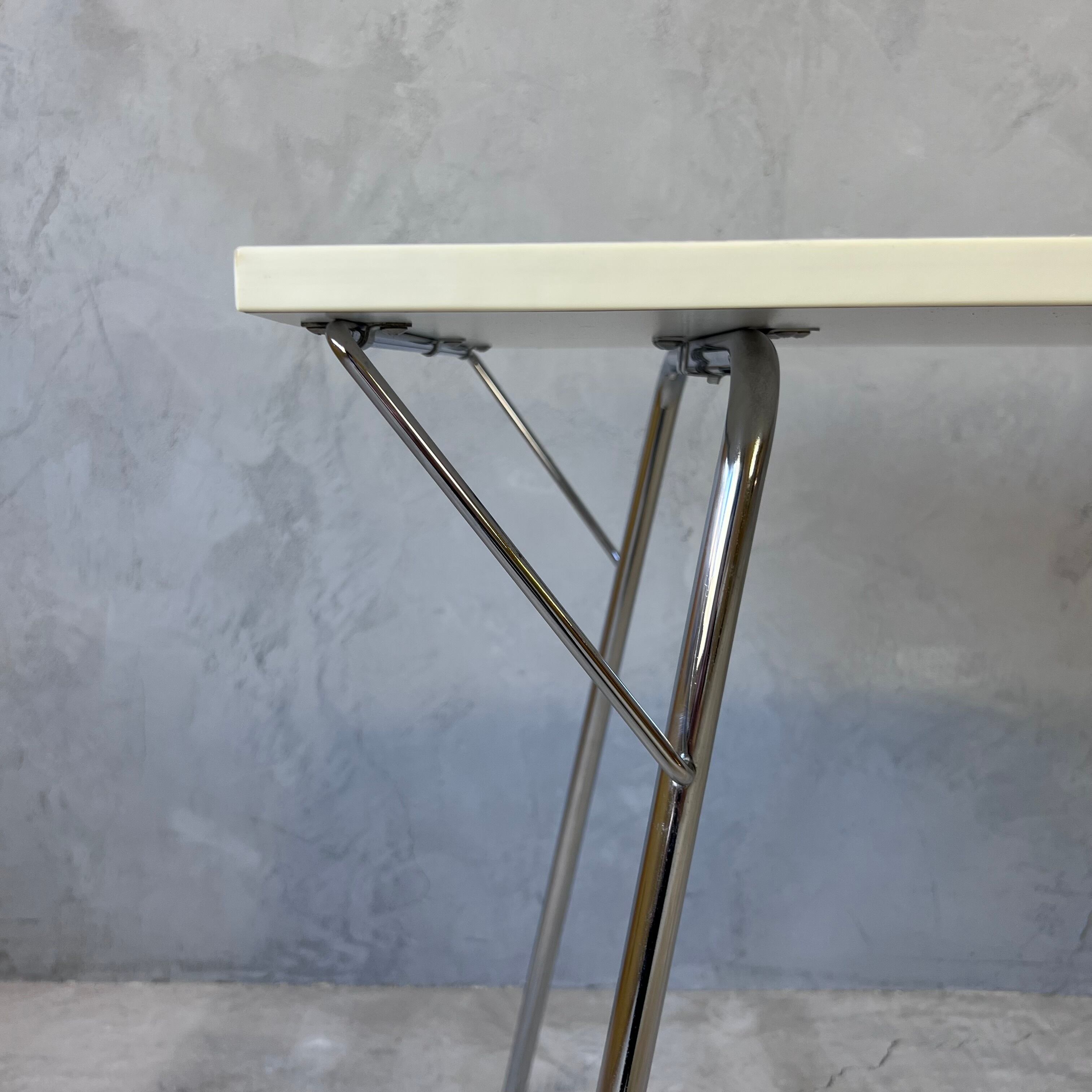 ドライバーにてパーツを外しますと折り畳みできるという構造は、四国出身の新居猛がニーチェア開発時に発送時の利便性を考慮したうえ採用したフォールディング機能を継承し、軽量、安価、大衆向けの「ライスカレーのような」という理念をも踏襲したグッドデザインです。