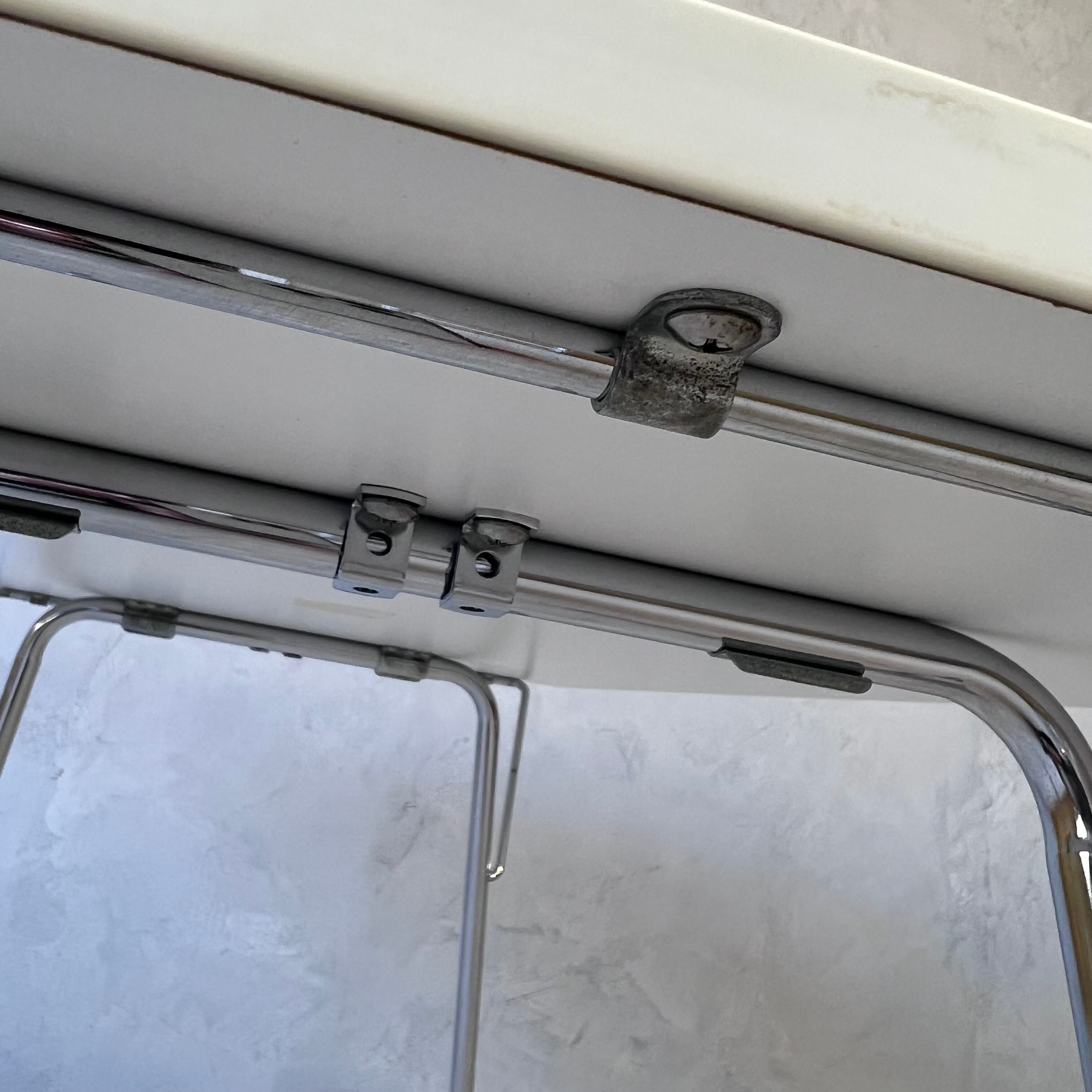 天板裏、画像中でマーキングしてあるパーツのみ純正ではございませんが、機能は十分果たしており、強度に問題はございません。