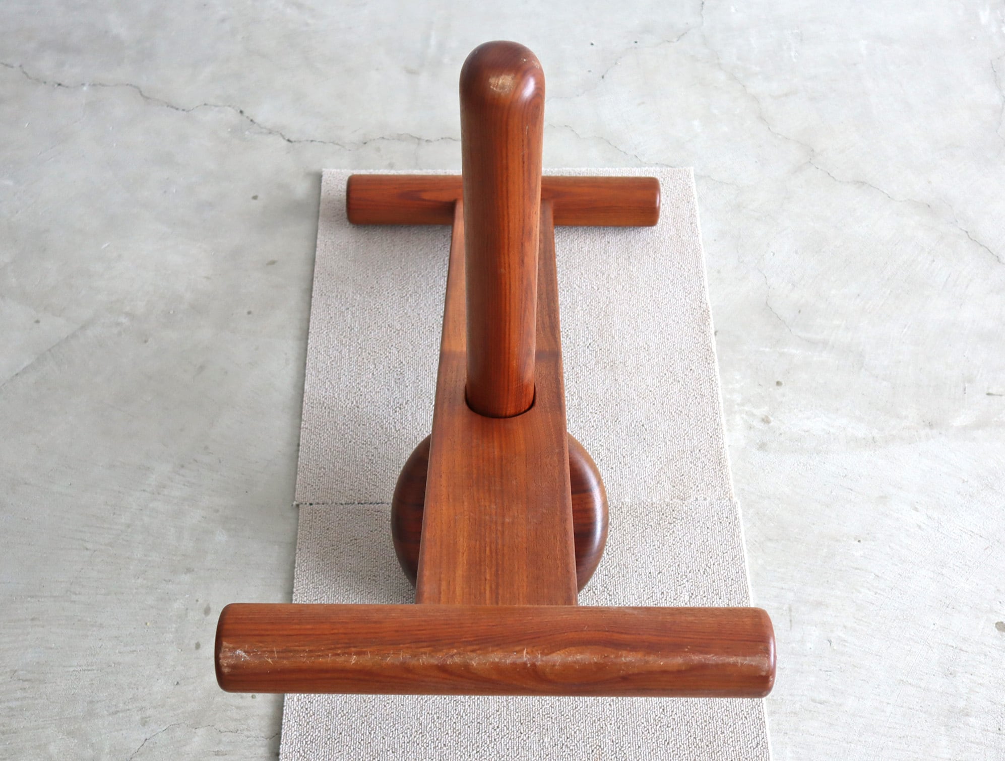 [ニューギニアローズウッド] の別名を持つ花梨の無垢材によるもので、同じマメ科の南洋材、特に座面は北欧家具に好んで使用されるローズウッドに近い木理を持ち、特異な存在感を纏っております。