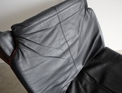 重量約8キロの軽量設計に名作椅子の絶対条件である「美しい後ろ姿」を併せ持つため、可動させながらランダムポジションで使用でき実用度は高め、近年、あまりの人気にリプロダクトモデルも出ているようですが、こちらはヴァットネ社のオリジナル、ブラックレザーにくすんだレッドカラーのパイピングが心憎い、レアヴァージョンになります。