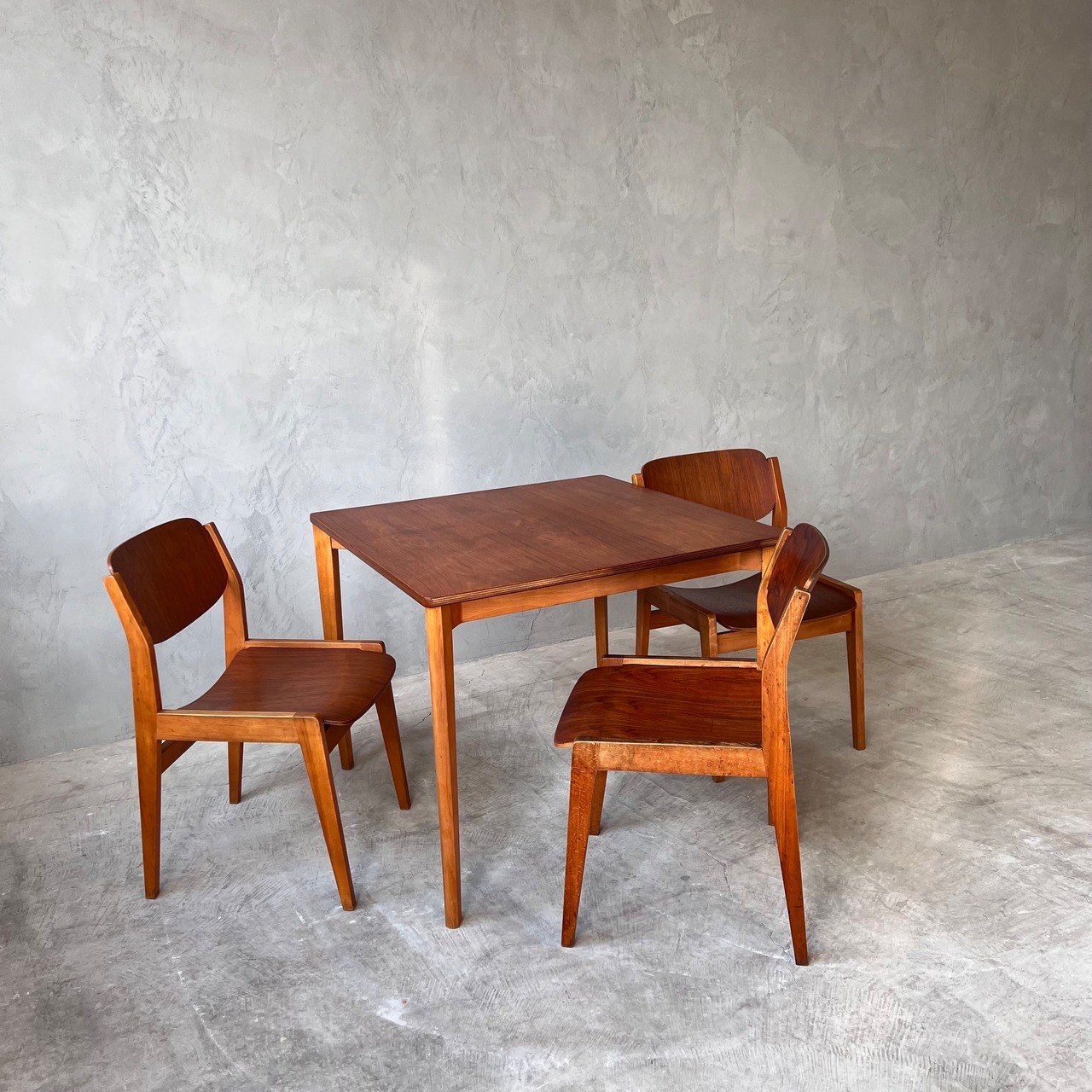 現行品はプライウッド表面がナラ材でフレームはビーチ無垢材のウレタン塗装ですが、こちらのモデルはチークプライウッド×ビーチ無垢材フレームのオイルフィニッシュ、おそらくは70年代後半から80年代にかけて製造された、北欧テイスト溢れるヴィンテージ品です。