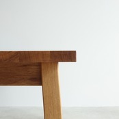 脚部が、長手(長い方の辺)から見ても妻手(短い方の辺)から見ても外側に傾斜している四方転びという設計になっており、厚さ3.2センチの重厚な天板のテーブルとしてはあまり見ないコンパクトサイズですので、ダイニングテーブル以外でも、デスクや作業台、ショップ什器等、様々なシチュエーションでの活躍が期待できます。