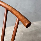 肘掛と背もたれが一体化したリング状のトップパーツをストレートのスポークで支えるシルエットは無垢材曲げ加工のパイオニア、秋田木工でなければ成しえない、唯一無二のシルエットです。