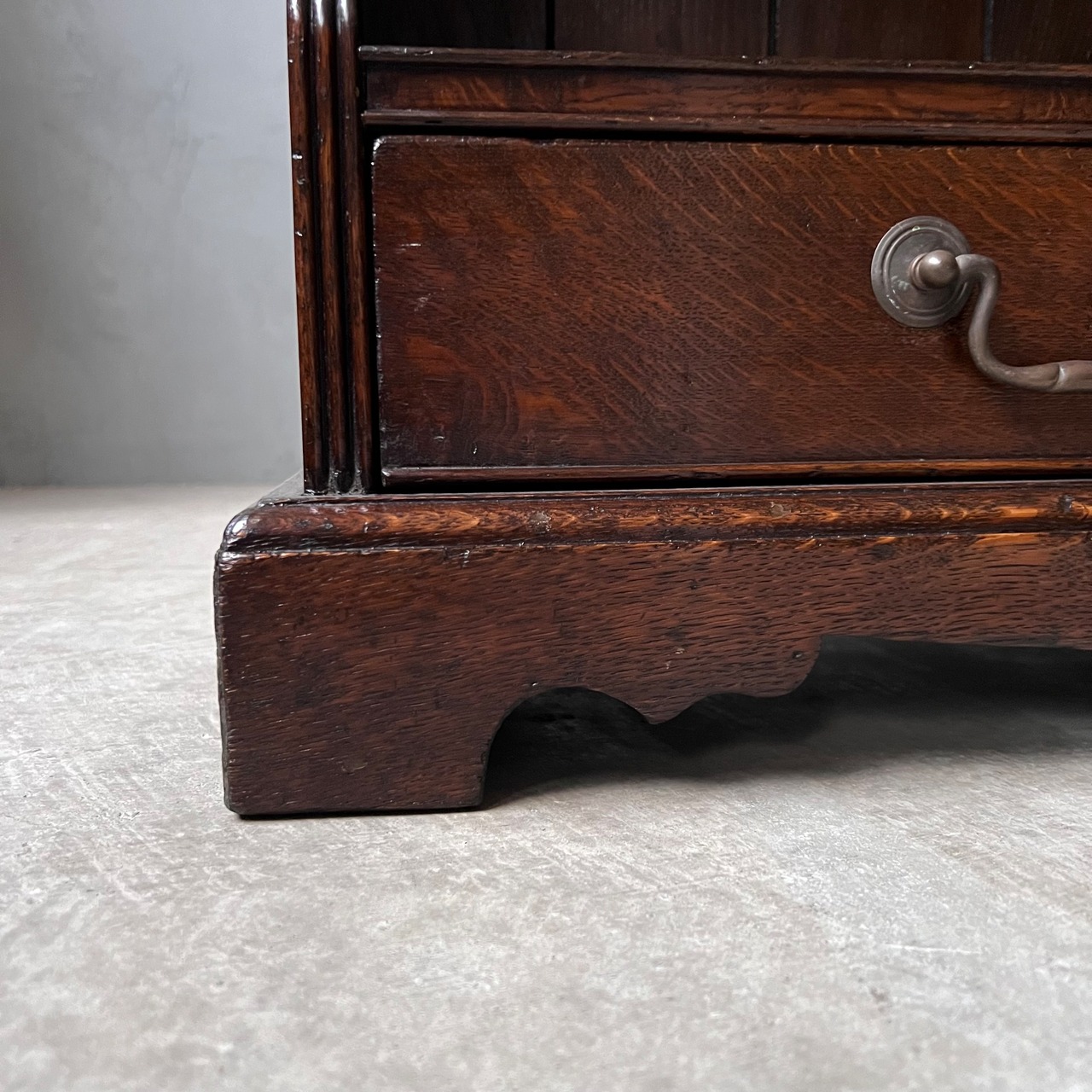 背板までオーク無垢材がふんだんに使用された、使いやすい小ぶりなサイズが特徴のアンティークシェルフになります。