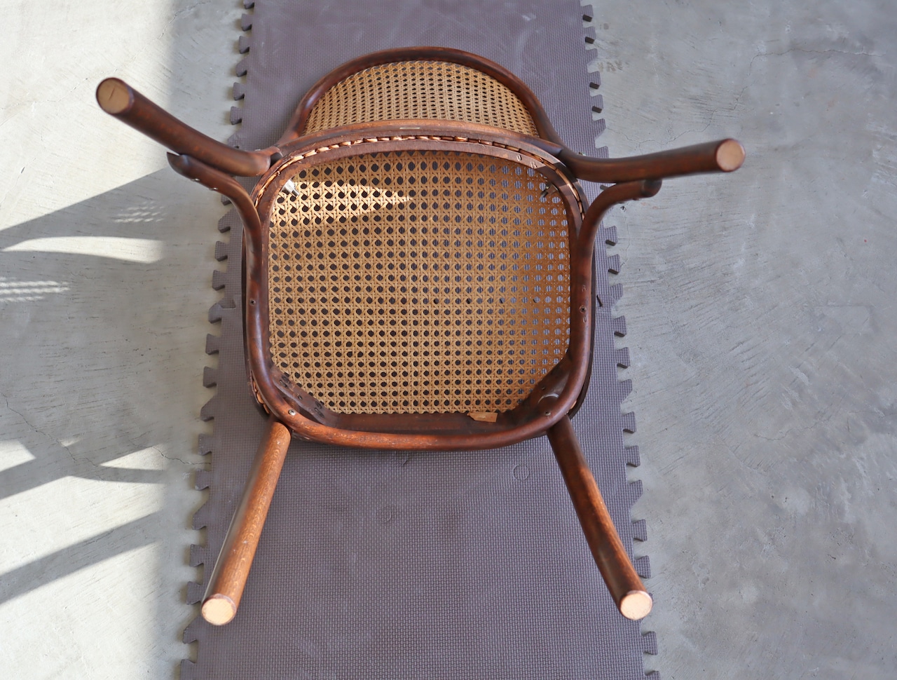 曲木椅子の最大の特徴である軽量故の取り回しの良さ、籐編みの背、座による軽やかな着座感、用の美を体現するようなシンプルなフォルム、「合理的」という言葉がしっくり来る、全てにおいてバランスの取れた名作チェアになります。