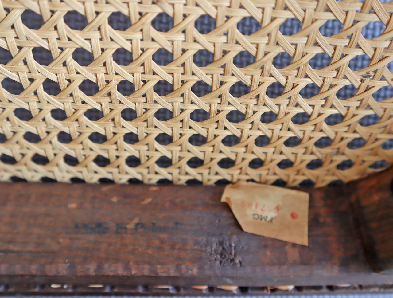 ダークブラウンのフレームにナチュラルな籐のコントラストが美しく使用感も浅め。