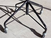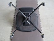 合成皮革で張り込まれたプライウッドにキャスター仕様の鉄脚。