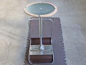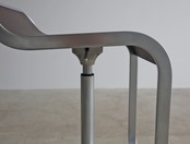 フットレストから座面にかけてクロームの同一フレームで構成したシンプルさ。座面はダークウォルナットカラーで空間を引き締め、無駄がなく洗練されたデザインに仕上がっています。