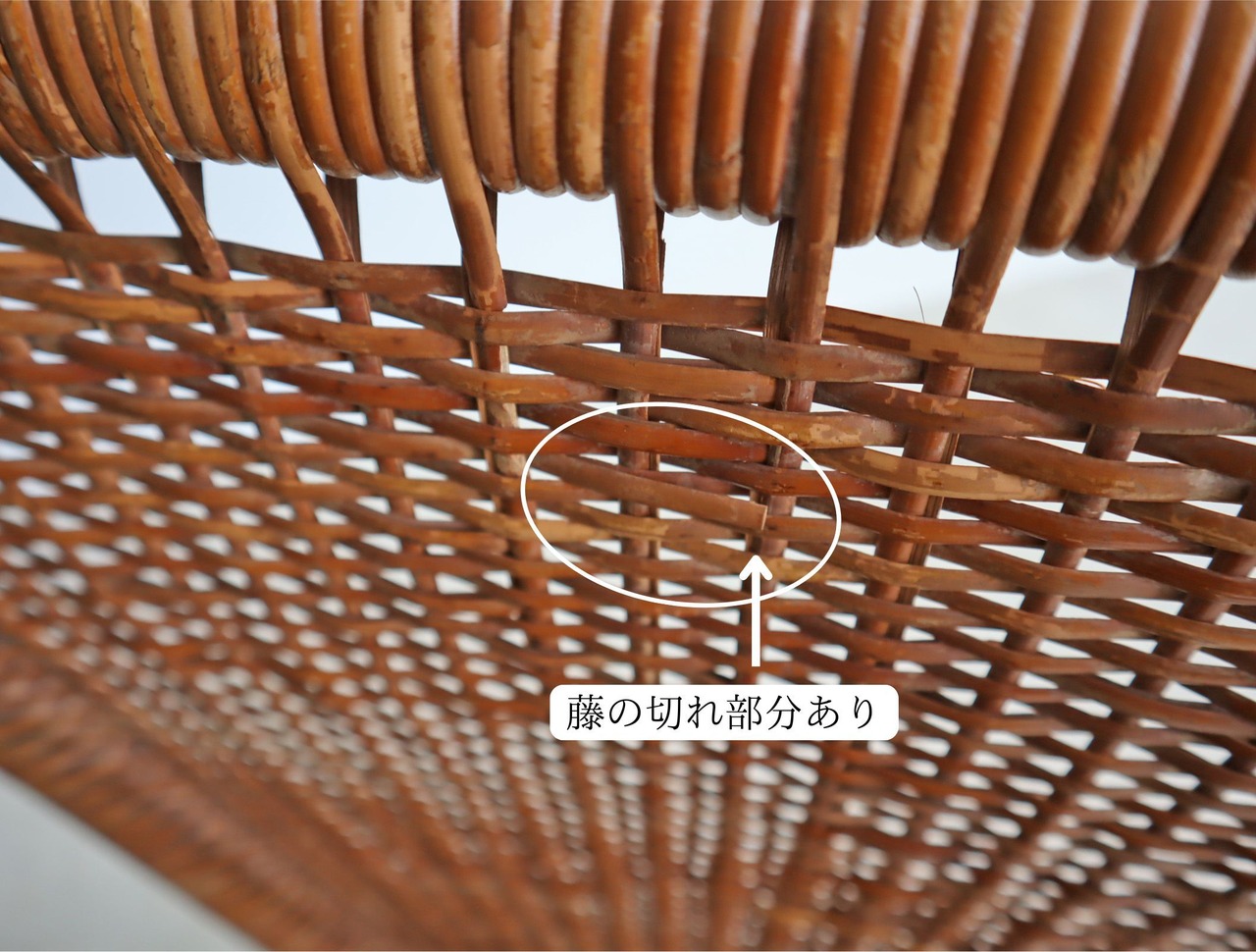 フレームに当て傷、背もたれに探せば見つかる程度に籐の切れ等使用感がございますが、座面を新規で張り替え済み、年代から鑑みましても状態良好なヴィンテージコンディションとしてご紹介させていただきます。