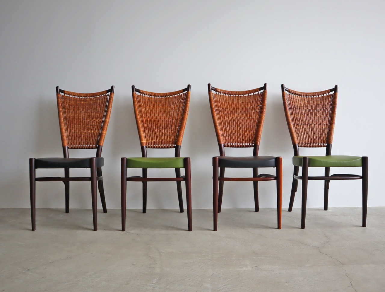 「東洋人の神秘な手でつくった」というキャッチフレーズでアメリカを中心に、籐編み工員を200人投入し月間1,000脚以上が輸出されたそうですが、輸出中心であったことと籐編み構造という特性上、製造数に対してヴィンテージとしての個体数が極端に少ないレアモデルです。