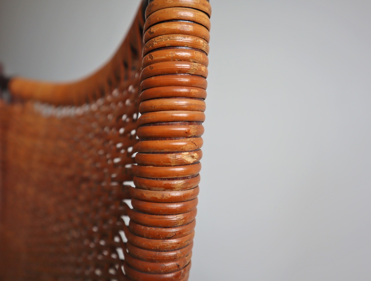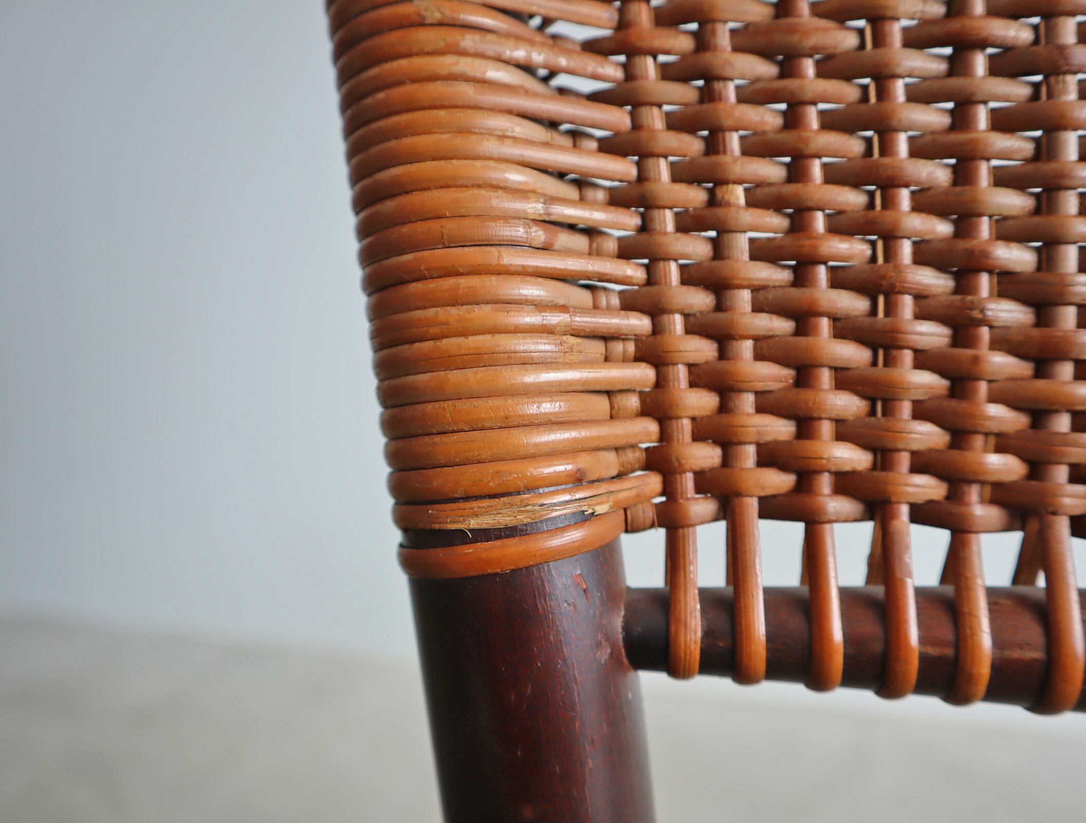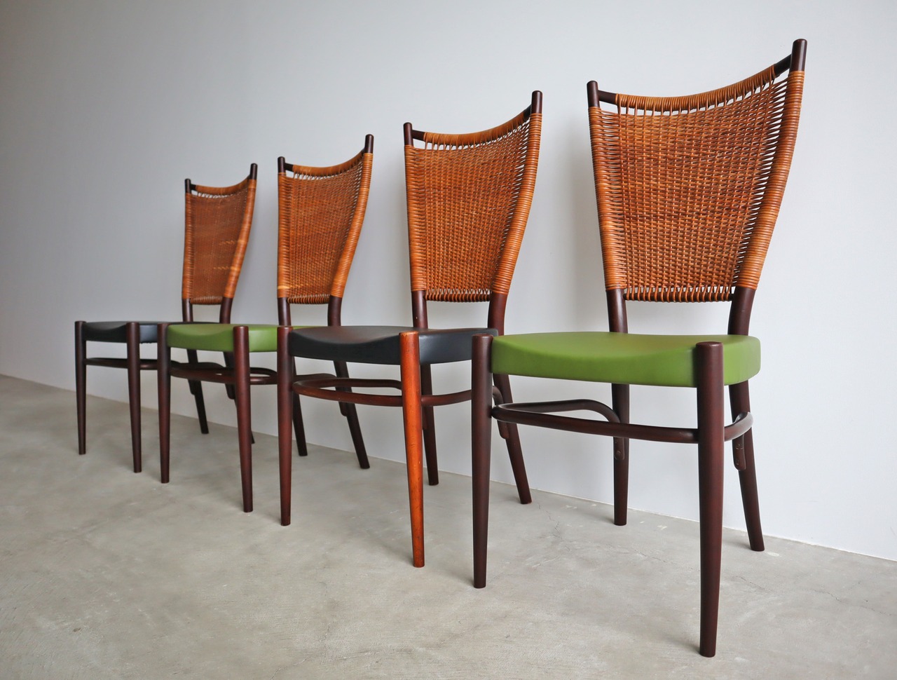 「東洋人の神秘な手でつくった」というキャッチフレーズでアメリカを中心に、籐編み工員を200人投入し月間1,000脚以上が輸出されたそうですが、輸出中心であったことと籐編み構造という特性上、製造数に対してヴィンテージとしての個体数が極端に少ないレアモデルです。