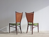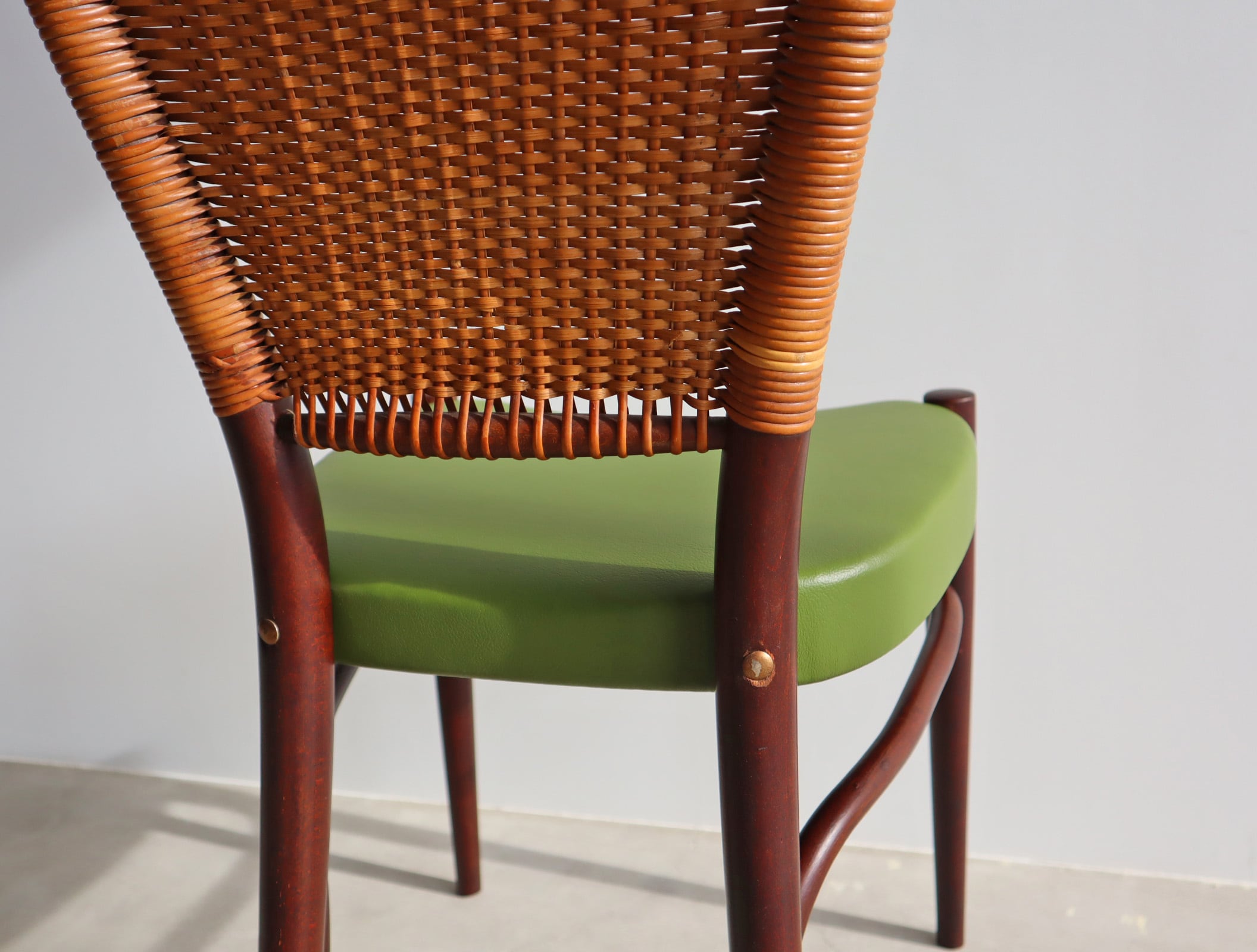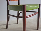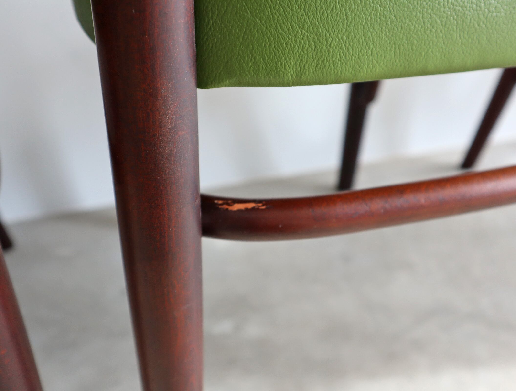 秋田木工のヴィンテージダイニングチェア、グリーン座面2脚セット。