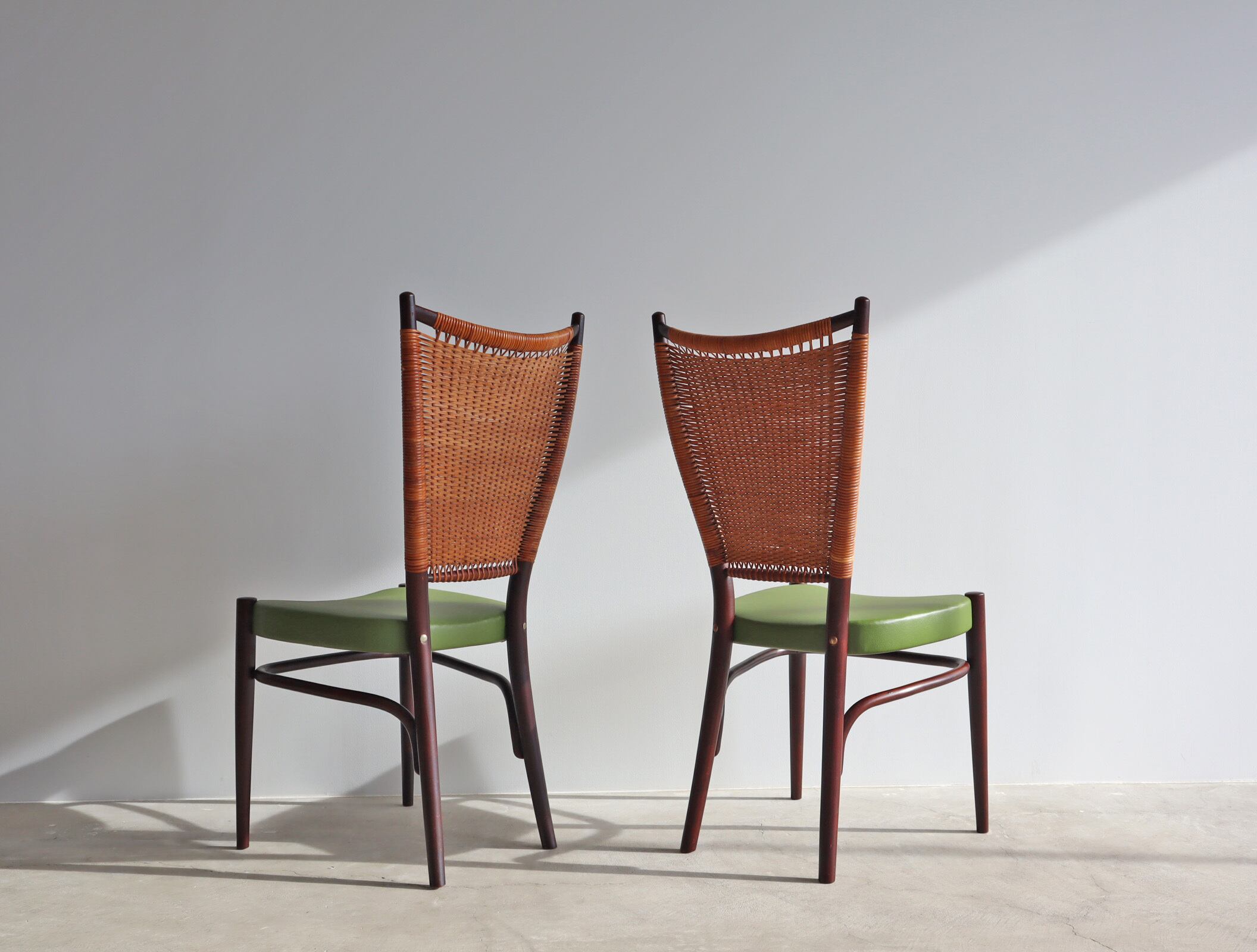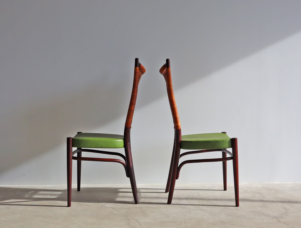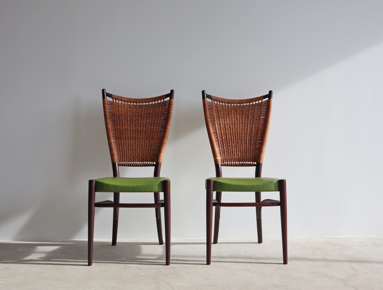 Japanese Modern Vintage AKITA MOKKO Toshio Yano 秋田木工 箟敏夫 ヴィンテージ ダイニングチェア グリーン 2脚セット