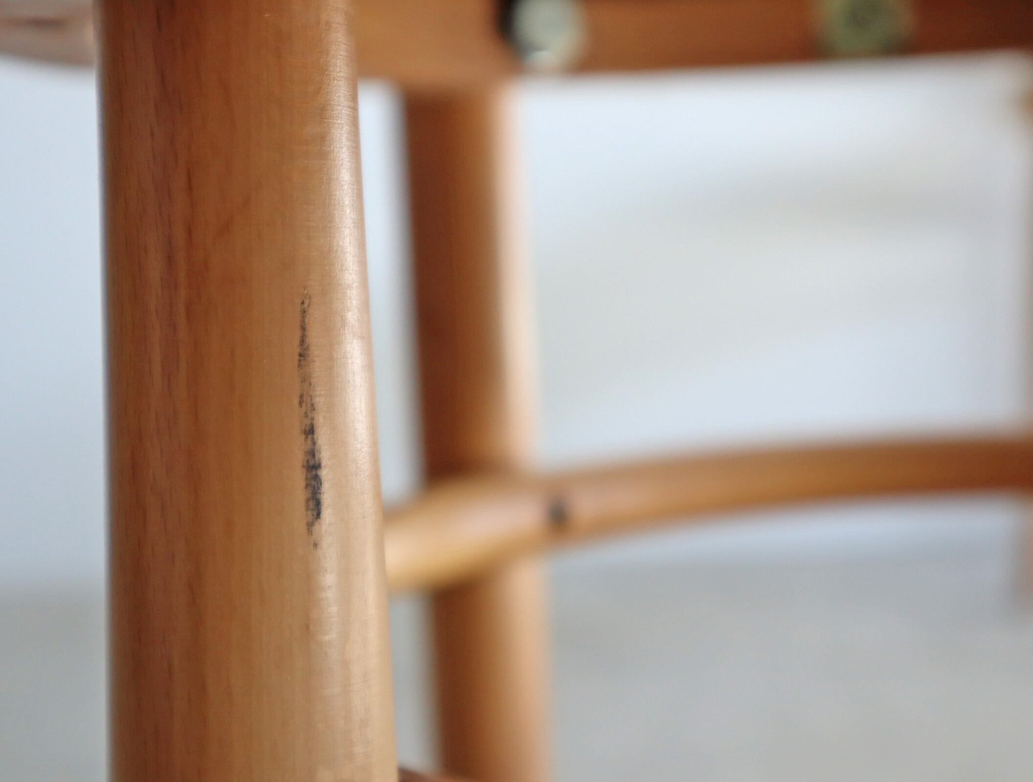 低目の背もたれの曲線がちょうど腰部分にフィットし柔らかなあたりを実現、小ぶりながら座面高は45センチとダイニングチェアとしても使用可能です。