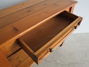 挽き物レッグに真鍮の取手、クラシックスタイルながらパイン材により軽快な印象のヴィンテージコンソールテーブルになります。
