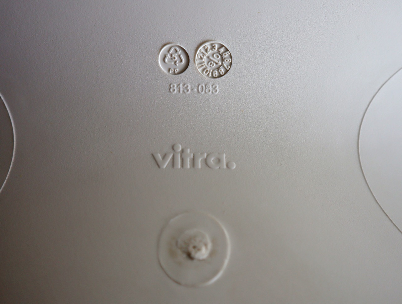1960年代から開発を始め1968年に量産化に成功した、世界初のプラスチックによる一体成形型のチェアで、こちらの商品は1999年に環境に配慮してポリプロピレン製でリデザインされたヴィトラ社のモデルで近年製造の個体と思われます。